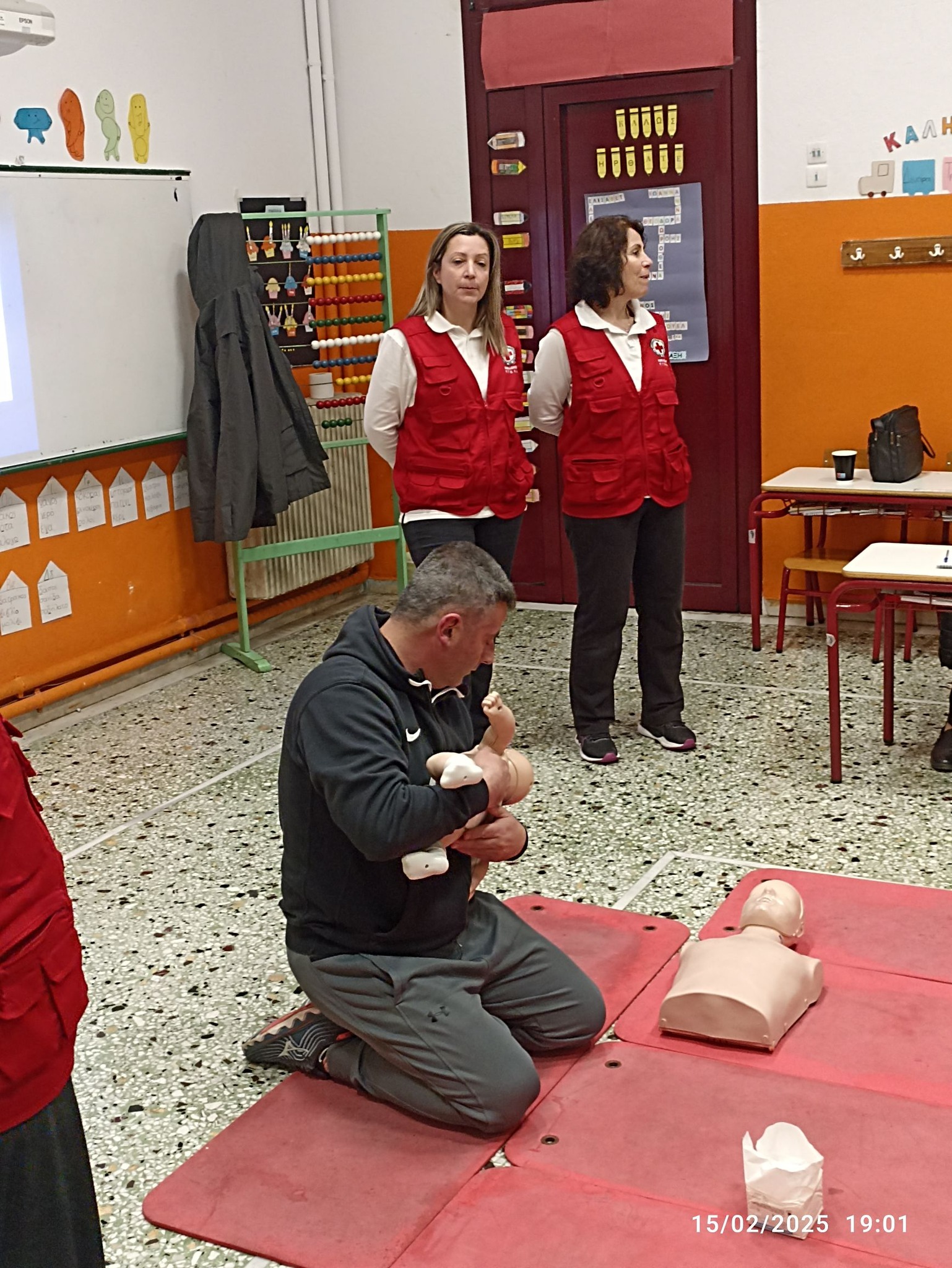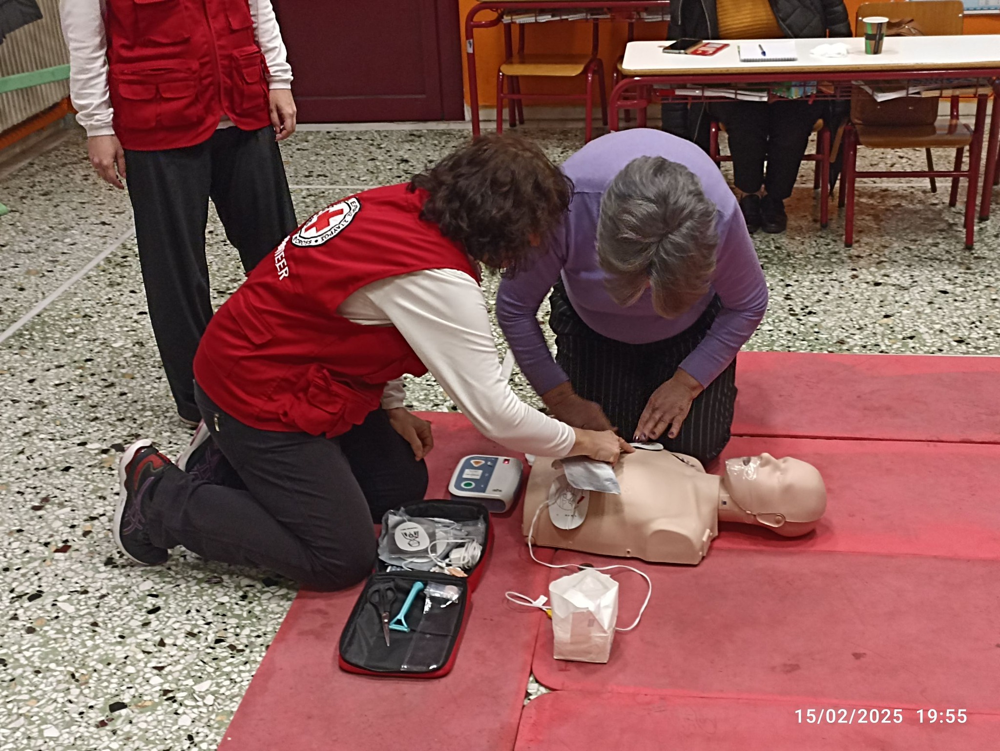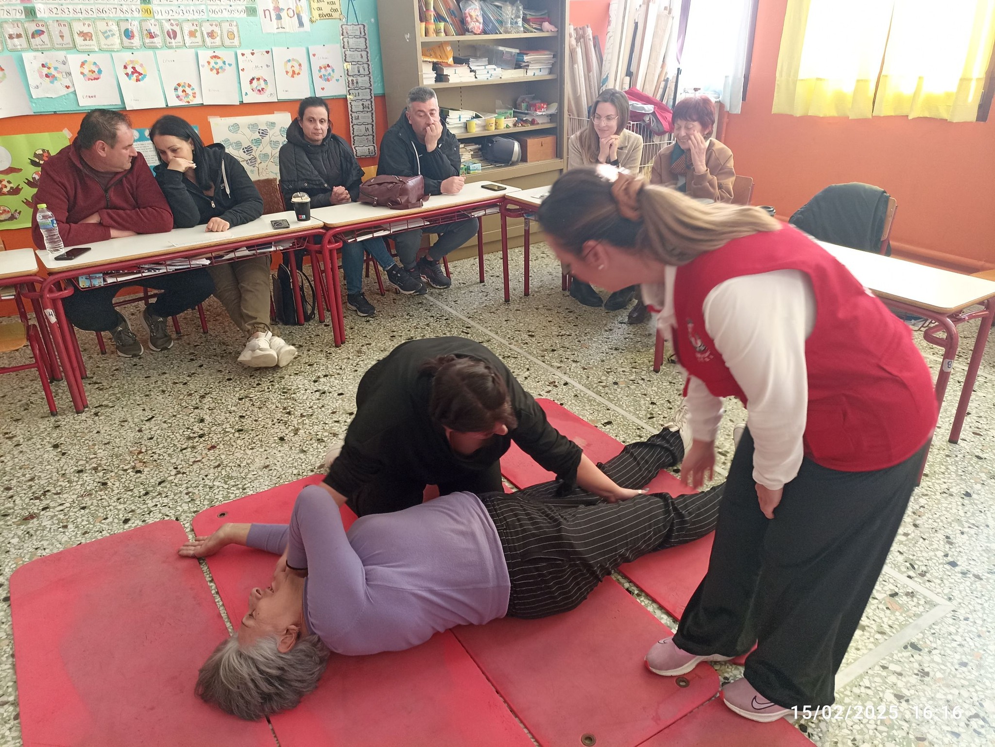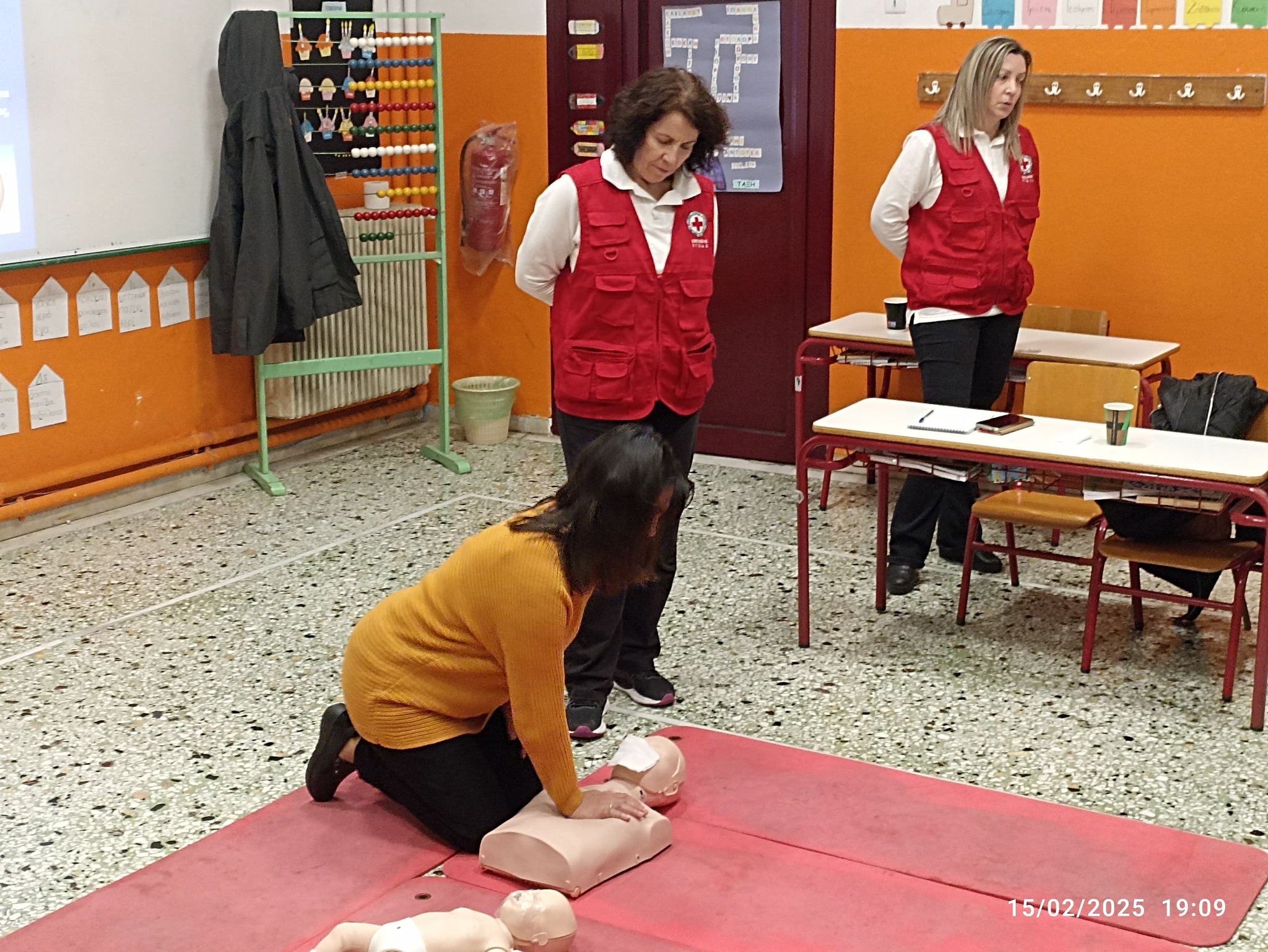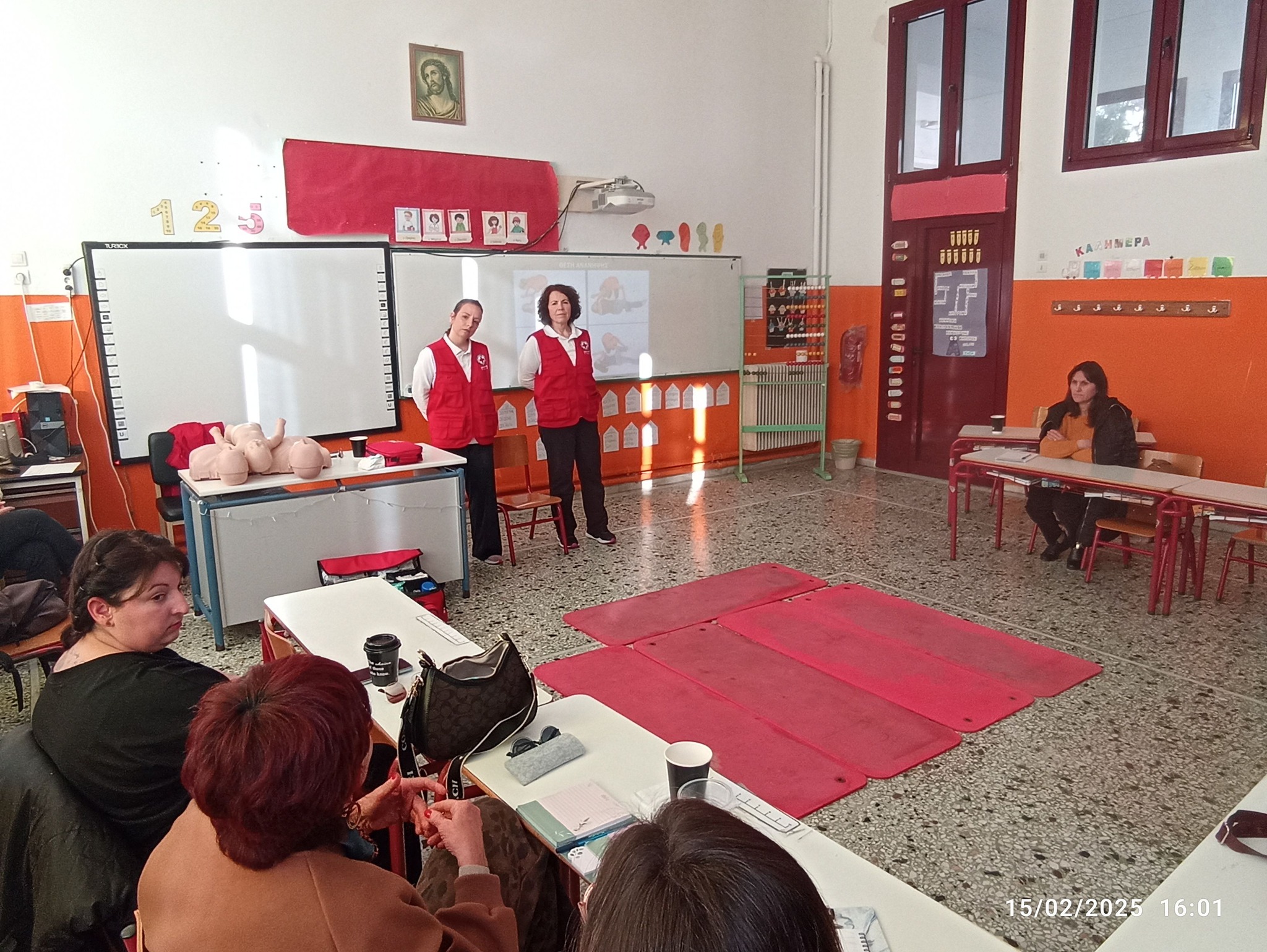 Η εκπαίδευση έγινε από τις Εθελοντριες πιστοποιημένες Εκπαιδευτριες του τομέα υγείας του ΕΕΣ του Περιφερειακού Τμήματος Λήμνου -Αγιου Ευστρατίου, Αλέξ. Τζιρτη, Σοφία Αρβανιτίδη, Βάσια Καραγιάννη, παρουσία του Προέδρου του ΠΣ Δημητρίου Κ. Αχιλαδελλη.