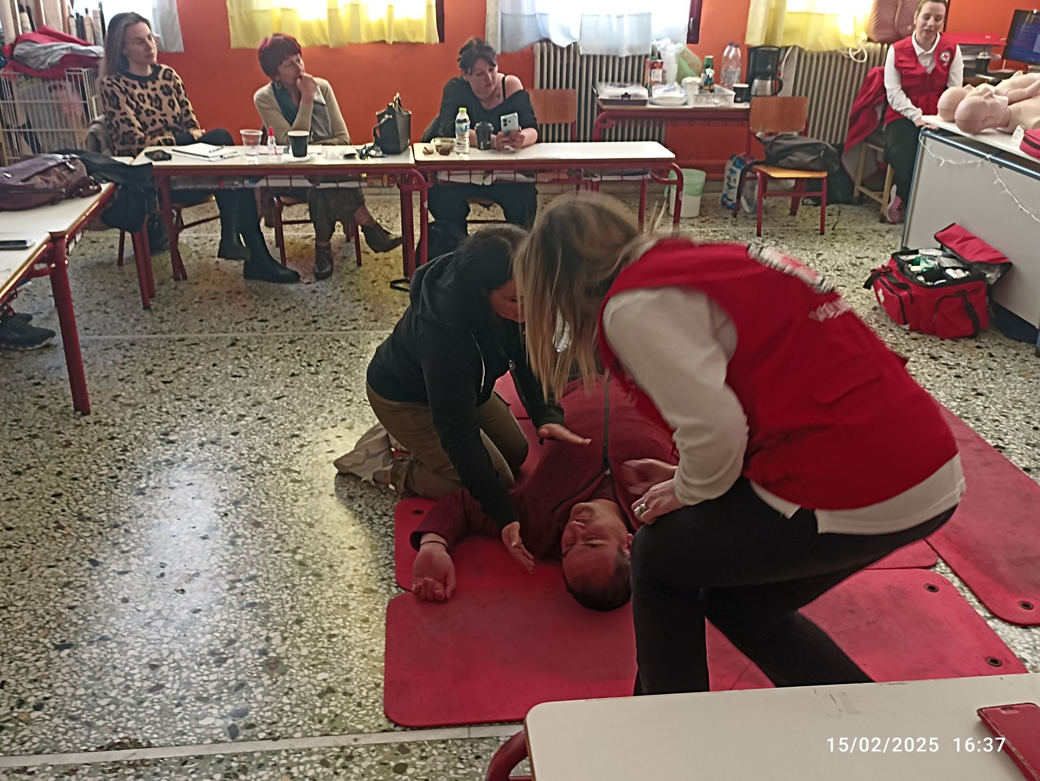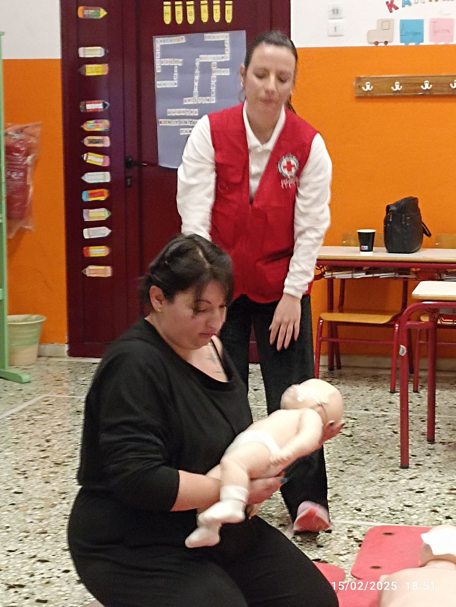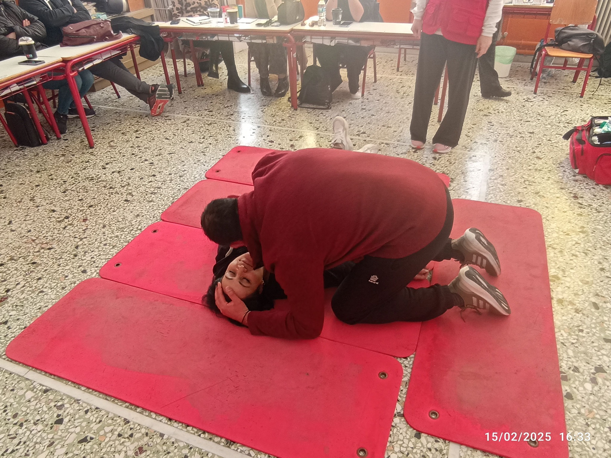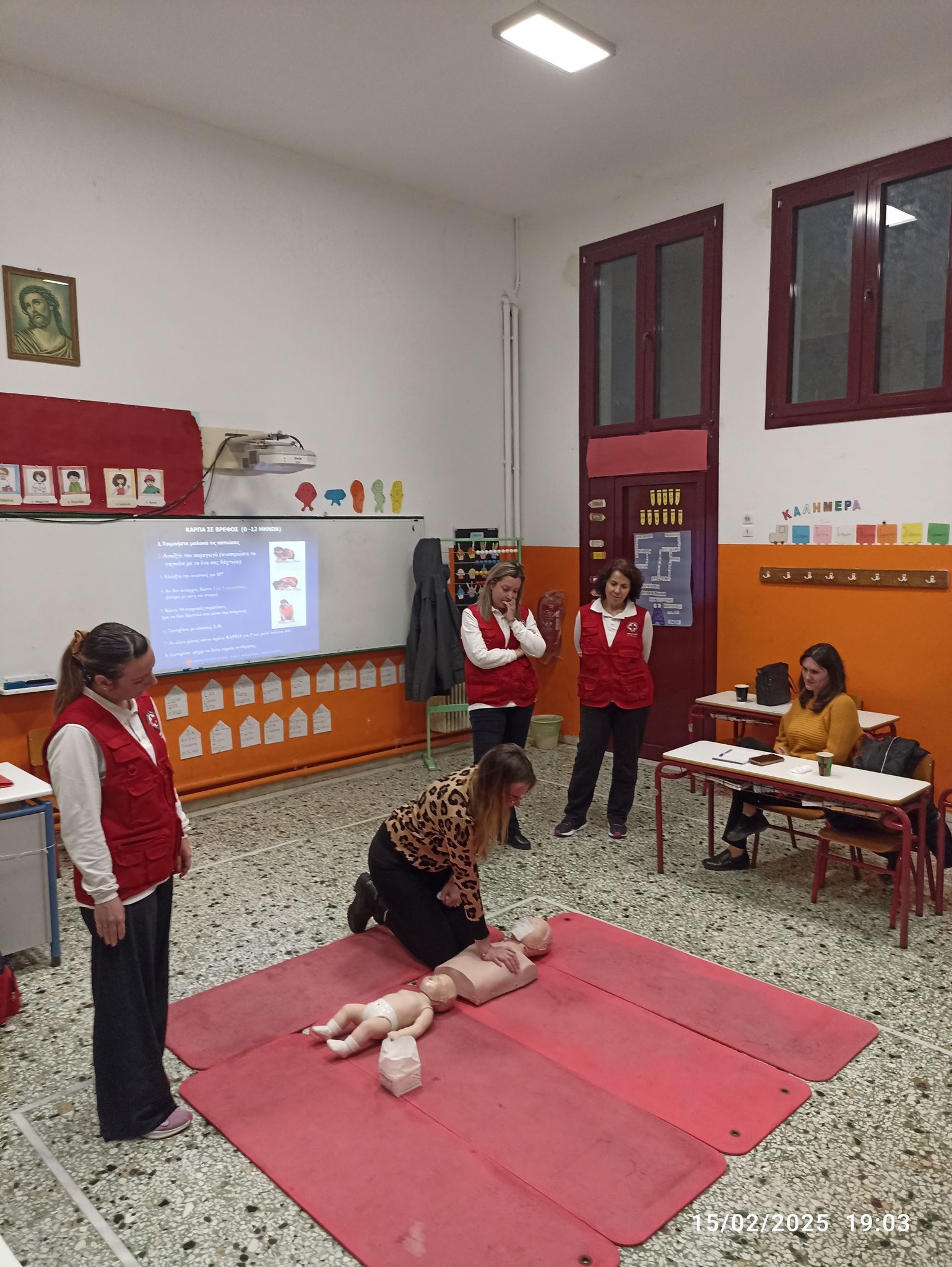 Η εκπαίδευση έγινε από τις Εθελοντριες πιστοποιημένες Εκπαιδευτριες του τομέα υγείας του ΕΕΣ του Περιφερειακού Τμήματος Λήμνου -Αγιου Ευστρατίου, Αλέξ. Τζιρτη, Σοφία Αρβανιτίδη, Βάσια Καραγιάννη, παρουσία του Προέδρου του ΠΣ Δημητρίου Κ. Αχιλαδελλη.