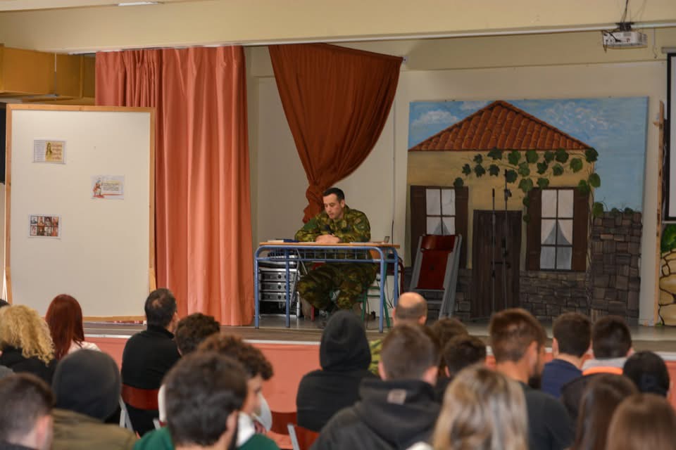 Την παρουσίαση πραγματοποίησαν ο Επχος Μιχαήλ Καρανίκας, ο Υπλγός Ευάγγελος Βενάρδος και η Αλχίας Αικατερίνη Μουτάφη, οι οποίοι παρείχαν χρήσιμες πληροφορίες σχετικά με τη φοίτηση, τις προοπτικές και τις απαιτήσεις της Σχολής Μονίμων Υπαξιωματικών (ΣΜΥ) και της Σχολής Ευελπίδων (ΣΣΕ).