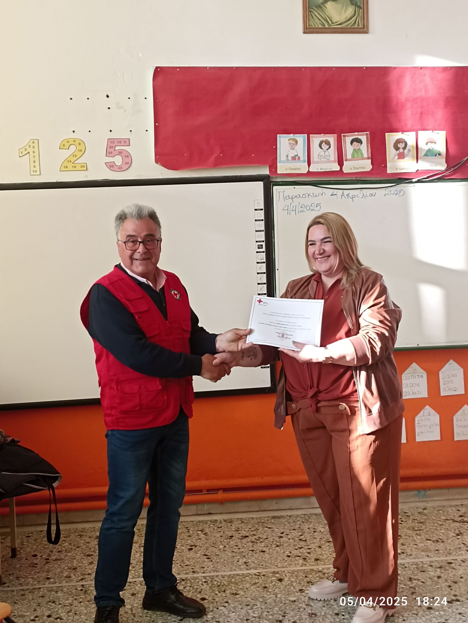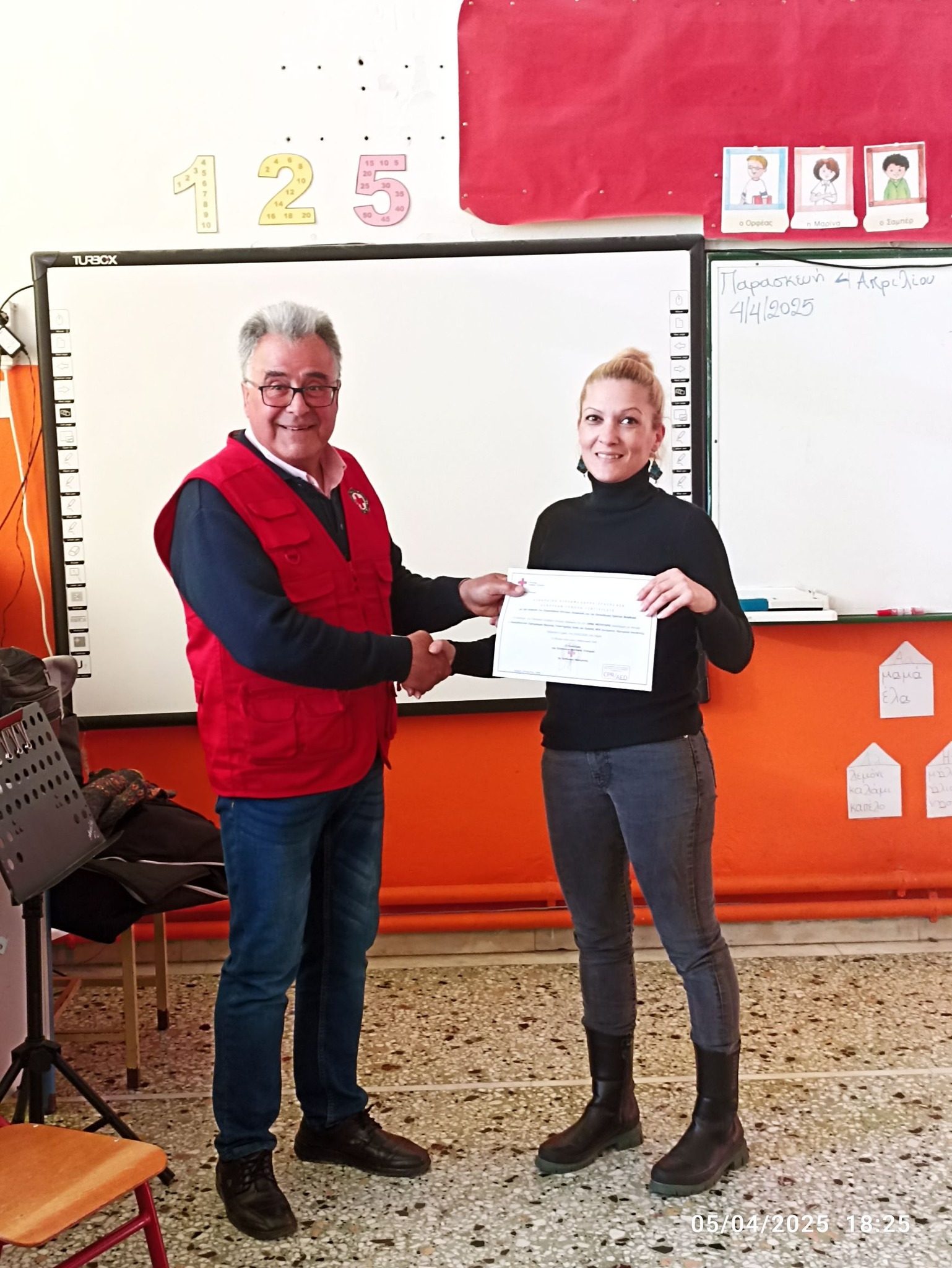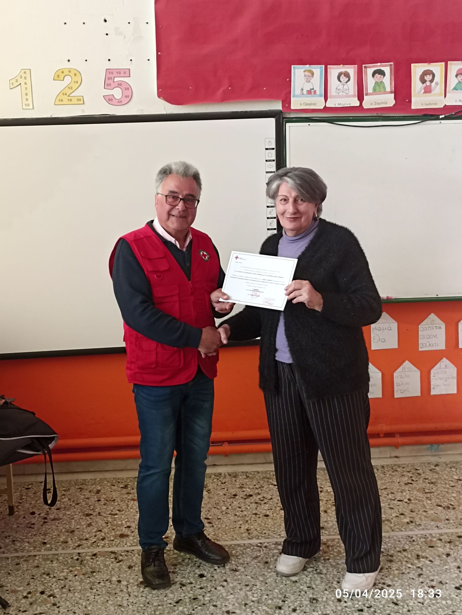 Την απονομή των πιστοποιητικών την έκανε ο Πρόεδρος του Περιφερειακού Τμήματος του Ελληνικού Ερυθρού Σταυρού Λήμνου και Αγίου Ευστρατίου κ. Δημήτριος Αχιλαδέλλης μαζί με την εθελόντρια του τμήματος κ. Αργυρώ Μαχαιρούδη.