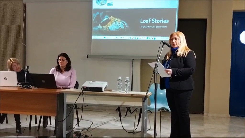 Το βίντεο παρασκευής του ψωμιού προβλήθηκε από την κα Λυγδά μετά το τέλος της ομιλίας της στην εκδήλωση και παραχωρήθηκε στους διοργανωτές, ώστε να το αξιοποιήσουν και να το προβάλουν σε επόμενες εκδηλώσεις-δράσεις τους στα Σχολεία.