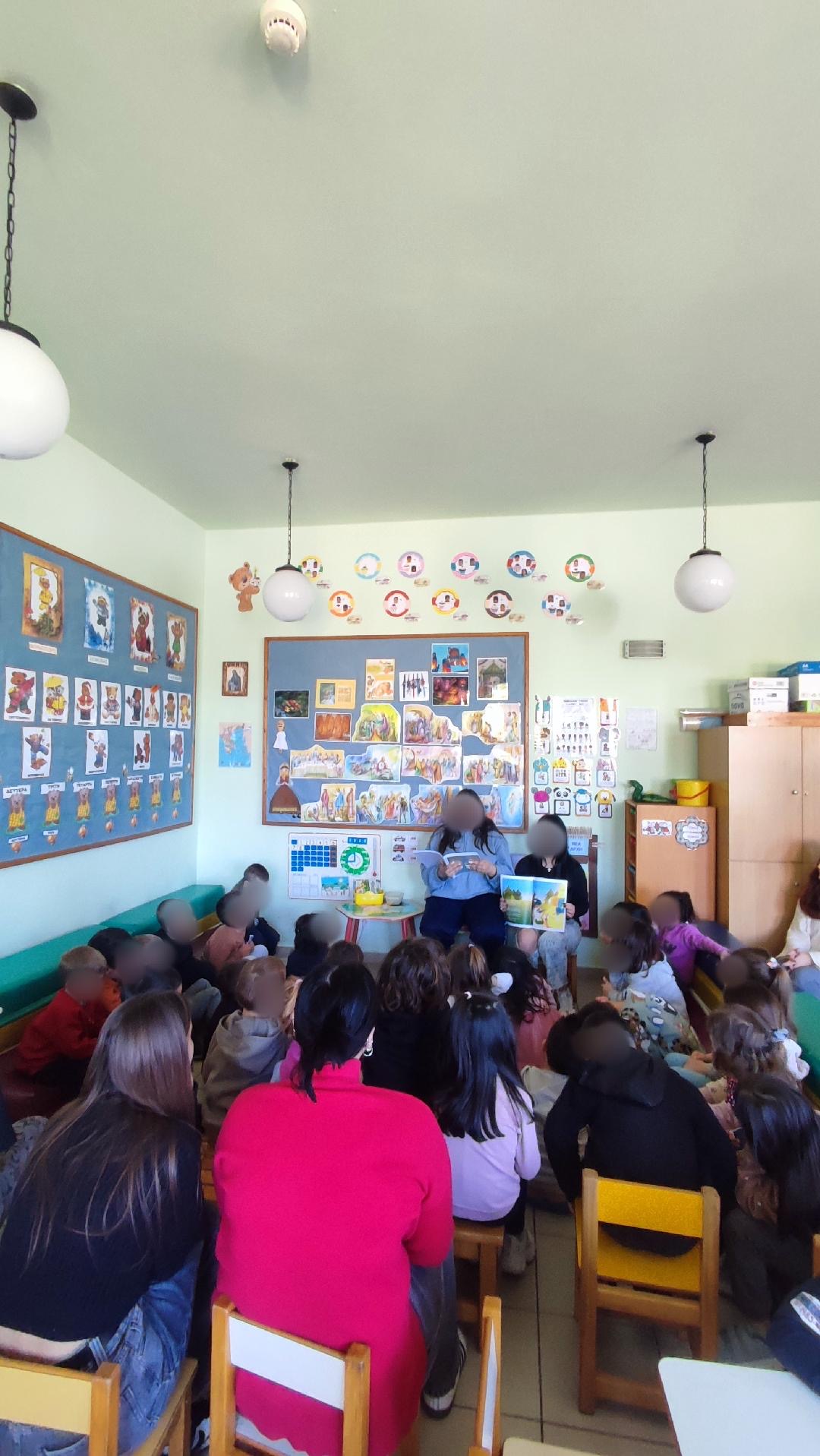 Η επίσκεψη ξεκίνησε με μια ζεστή γνωριμία, ενώ ακολούθησε η αφήγηση του παραμυθιού «Οι περιπέτειες του Γιούκι, της πυγολαμπίδας» από τη «Γωνιά Γνώσης». Η εικονογραφημένη ιστορία, που αποτελεί μέρος ειδικά διαμορφωμένου εκπαιδευτικού υλικού, βοήθησε τα παιδιά να κατανοήσουν με απλό και ευχάριστο τρόπο τι είναι η Ευρωπαϊκή Ένωση και ποιος είναι ο ρόλος της.