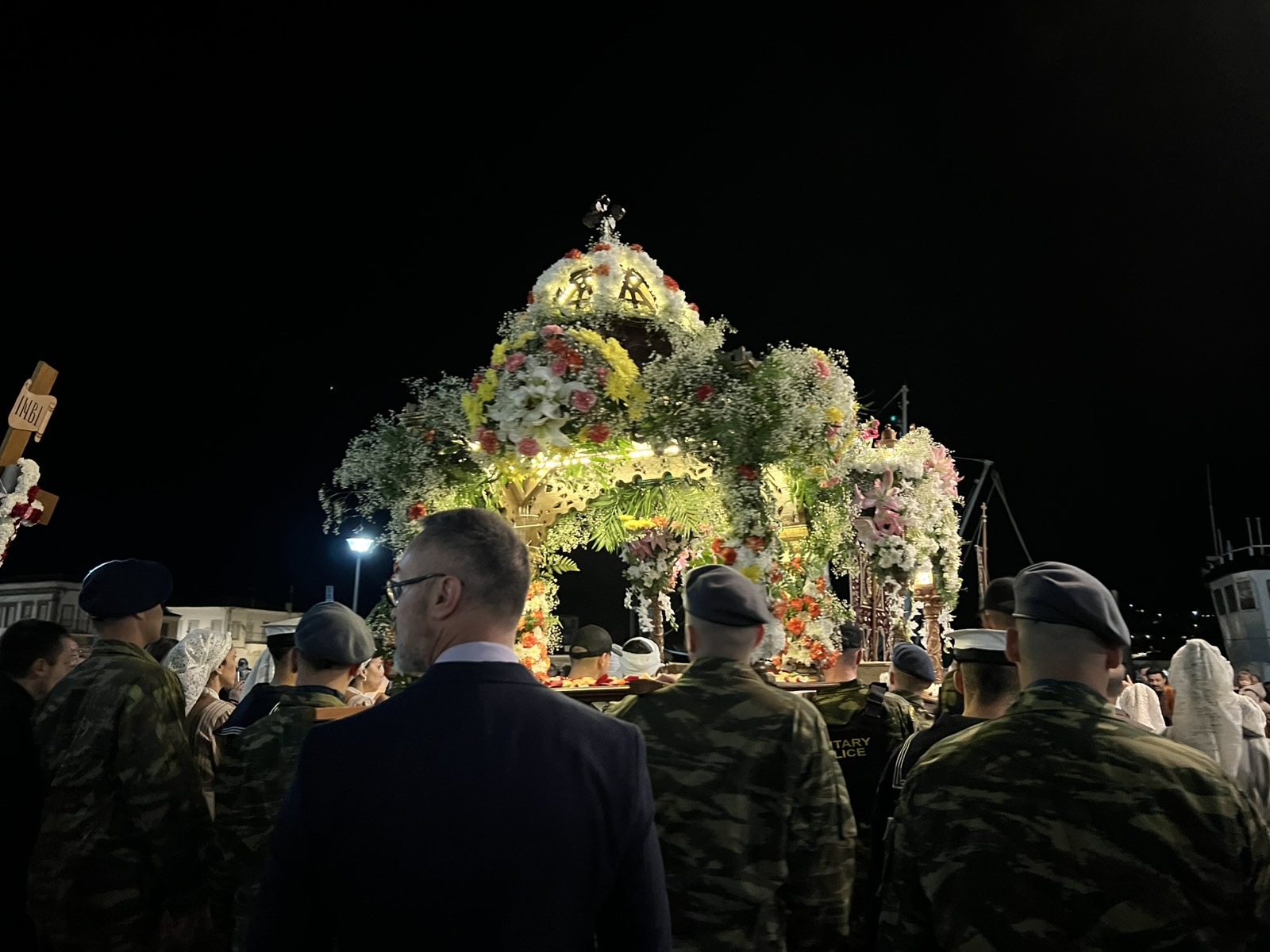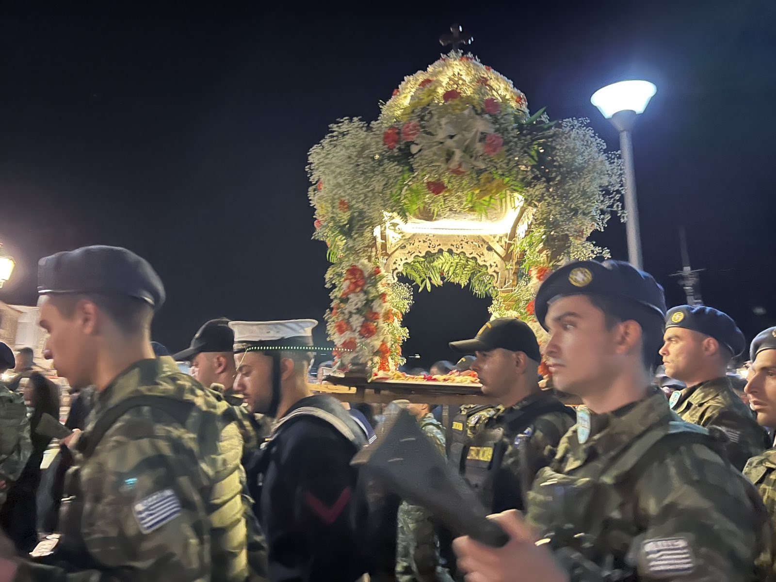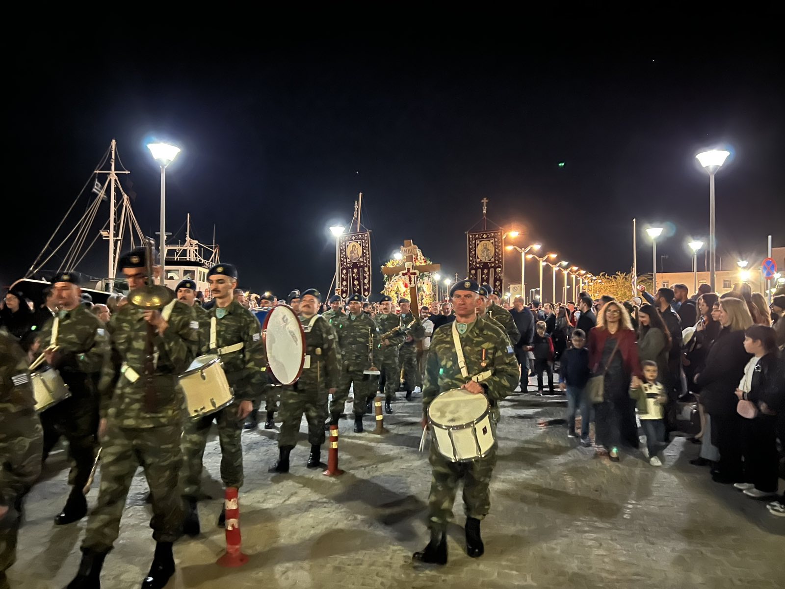 Αυτήν την ιερή ώρα, που είμαστε εκπροσωπευτικά άπαντες μαζεμένοι σε αυτό το σημείο του νησιού μας, σας προτρέπω και σας ικετεύω πατρικά να σταθούμε όλοι μας πρόθυμα δίπλα στον κάθε σταυρωμένο της διπλανής πόρτας, στην καθημερινότητά μας.
