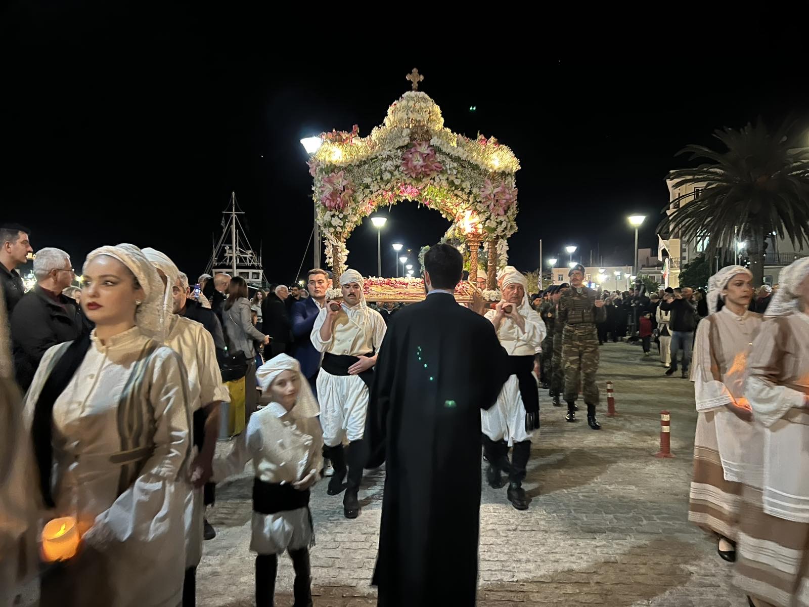 Στο πρόσωπο του Μεγάλου Νεκρού απόψε αναγνωρίζουμε τους κατατρεγμένους, τους πρόσφυγες, τους πτωχούς, τους λησμονημένους, τους φυλακισμένους, τους ασθενείς και τους μοναχικούς. Ο Επιτάφιος δεν είναι μόνο αυτό που βλέπουμε, αλλά κάτι βαθύτερο και επιστηρικτικό για όλους μας, που πρέπει να καταλάβουμε. Είναι το πέρασμα του Θεού μέσα από τα σκοτεινά σοκάκια της ανθρώπινης απόγνωσης. Και μόνο αν το δούμε έτσι, γεννιέται η ελπίδα, με το φως των κεριών που κρατούμε.