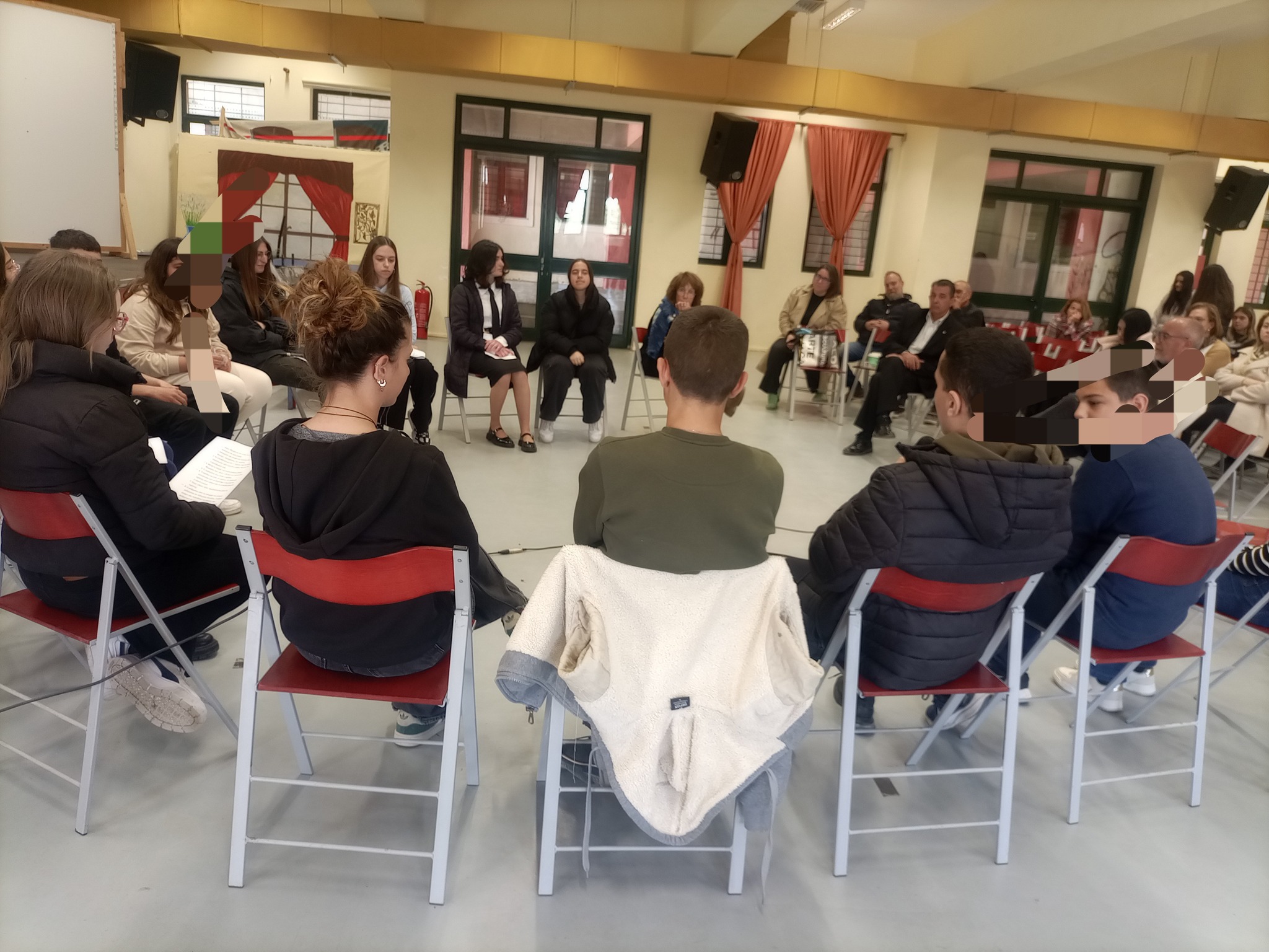 Μετά το πέρας των εκδηλώσεων το σχολείο αποδεχόμενο την πρόσκληση της κ. Αργυρώς Μουμτζίδου, εκπρόσωπο του φορέα ΠΟΛΥΓΛΩΤΤΗ ΠΟΛΙΣ και στα πλαίσια της ενεργού πολιτειότητας υποδέχθηκε στην αίθουσα εκδηλώσεών του μαθητές των τριών γυμνασίων της ΛΗΜΝΟΥ σε μια συζήτηση που είχε ως αφόρμηση τον Α΄Παγκόσμιο Πόλεμο και τη θυσία των ΑΝΖΑC, αλλά κεντρικός άξονάς της ήταν η ΕΙΡΗΝΗ ως πηγή ζωής, ανάπτυξης και πολιτισμού.