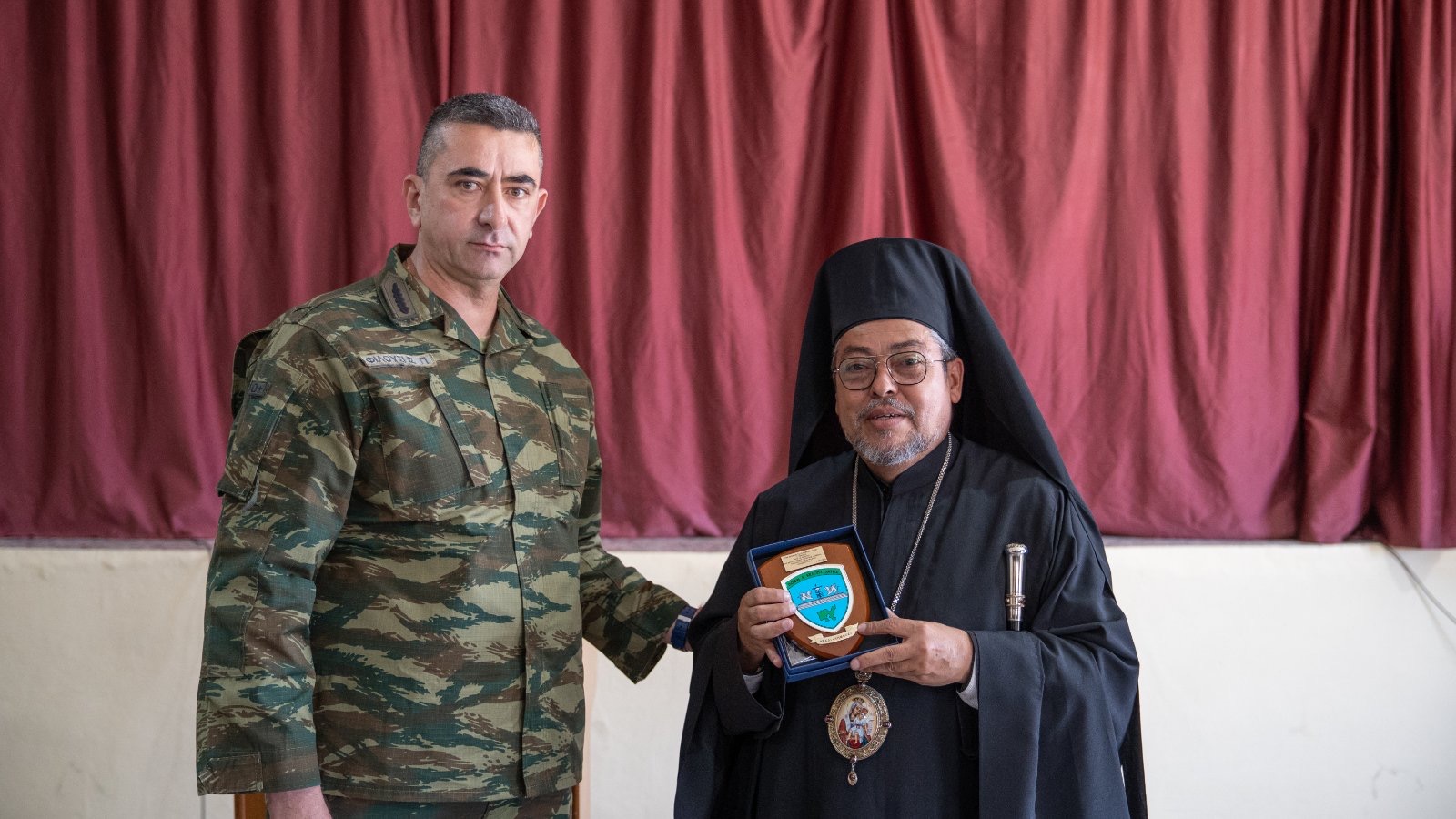 Η επίσκεψη ολοκληρώθηκε με ανταλλαγή αναμνηστικών και ευχές για ειρήνη, ενότητα και προκοπή του τόπου, αφού το στρατιωτικό ακροατήριο αυθόρμητα και παρατεταμένα χειροκρότησε τον Θεοφιλέστατο ομιλητή.