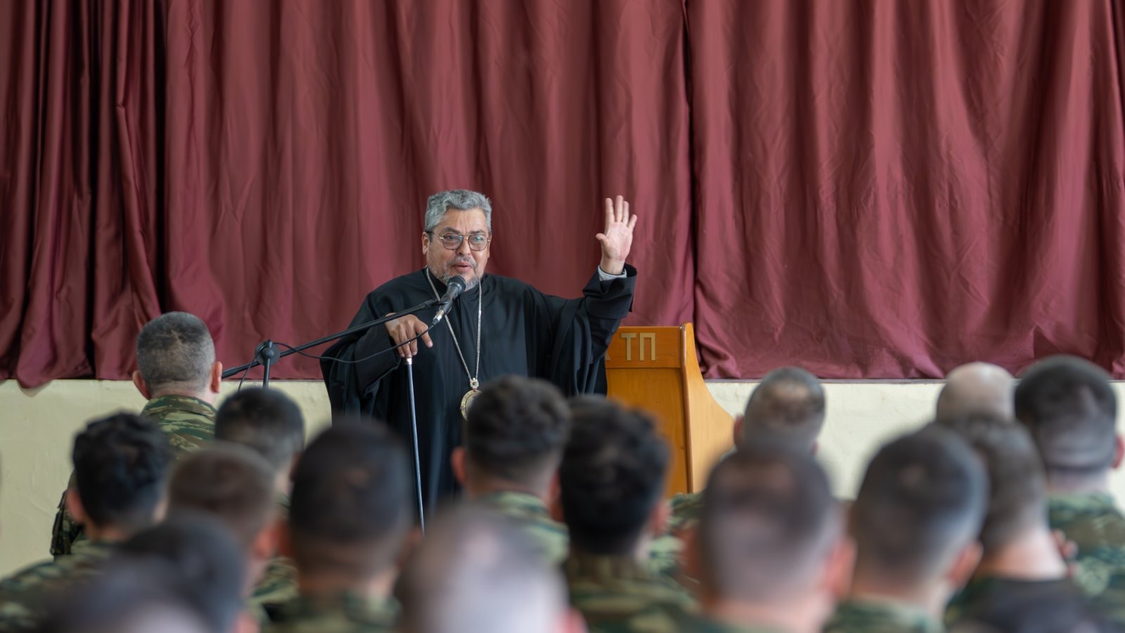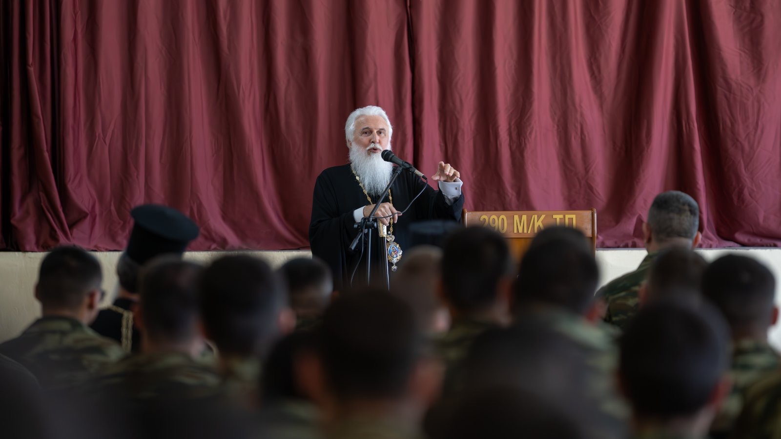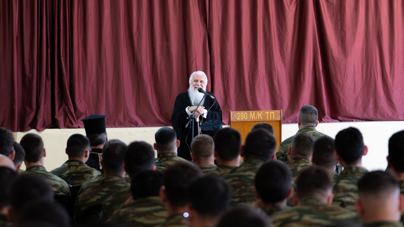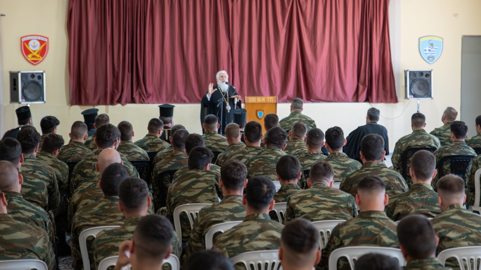 Ο Θεοφιλέστατος στον εμπνευσμένο λόγο του προς τους στρατευμένους νέους, ένδακρυς και με φανερό ζήλο τόνισε σε άπταιστα ελληνικά τις διαχρονικές αξίες της Ελλάδας, τις δυνατότητες που δίνει η πίστη και τον ευεργετικό ρόλο της Εκκλησίας, όπως αποδείχθηκε έμπρακτα στην ιστορική διαδρομή. Στην ομιλία του, αναφέρθηκε επίσης στον πνευματικό πλούτο της Ορθοδοξίας, στη σημασία της παράδοσης και στην ανάγκη της ενότητας, που πρέπει να στοχεύουμε, για να συνεχίσουμε μέσα από τις αντίξοες συνθήκες να αποτελούμε, ως γνήσιοι Έλληνες, τον φάρο του πολιτισμού και της πίστης.