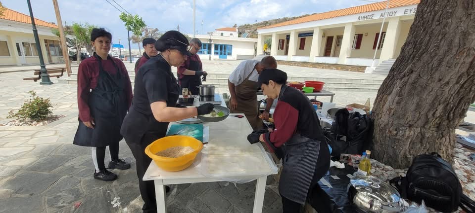 Με μεγάλη επιτυχία πραγματοποιήθηκε το Σάββατο 10 Μαΐου 2025 η Γιορτή Γαστρονομίας, όπου οι σπουδαστές του τμήματος Τεχνικός Μαγειρικής Τέχνης - Αρχιμάγειρας (Chef) κι ο εκπαιδευτής-Σεφ κ. Κελεμένης Ηλίας της ΣΑΕΚ Λήμνου συμμετείχαν ενεργά, μαγειρεύοντας δίπλα στις νοικοκυρές του Αγίου Ευστρατίου. Η εκδήλωση αποτέλεσε γιορτή δημιουργίας, με ζωντανές επιδείξεις μαγειρικής, γευστικές παραδοσιακές συνταγές, πίτες, φαγητά και γλυκίσματα από τα δύο νησιά.
