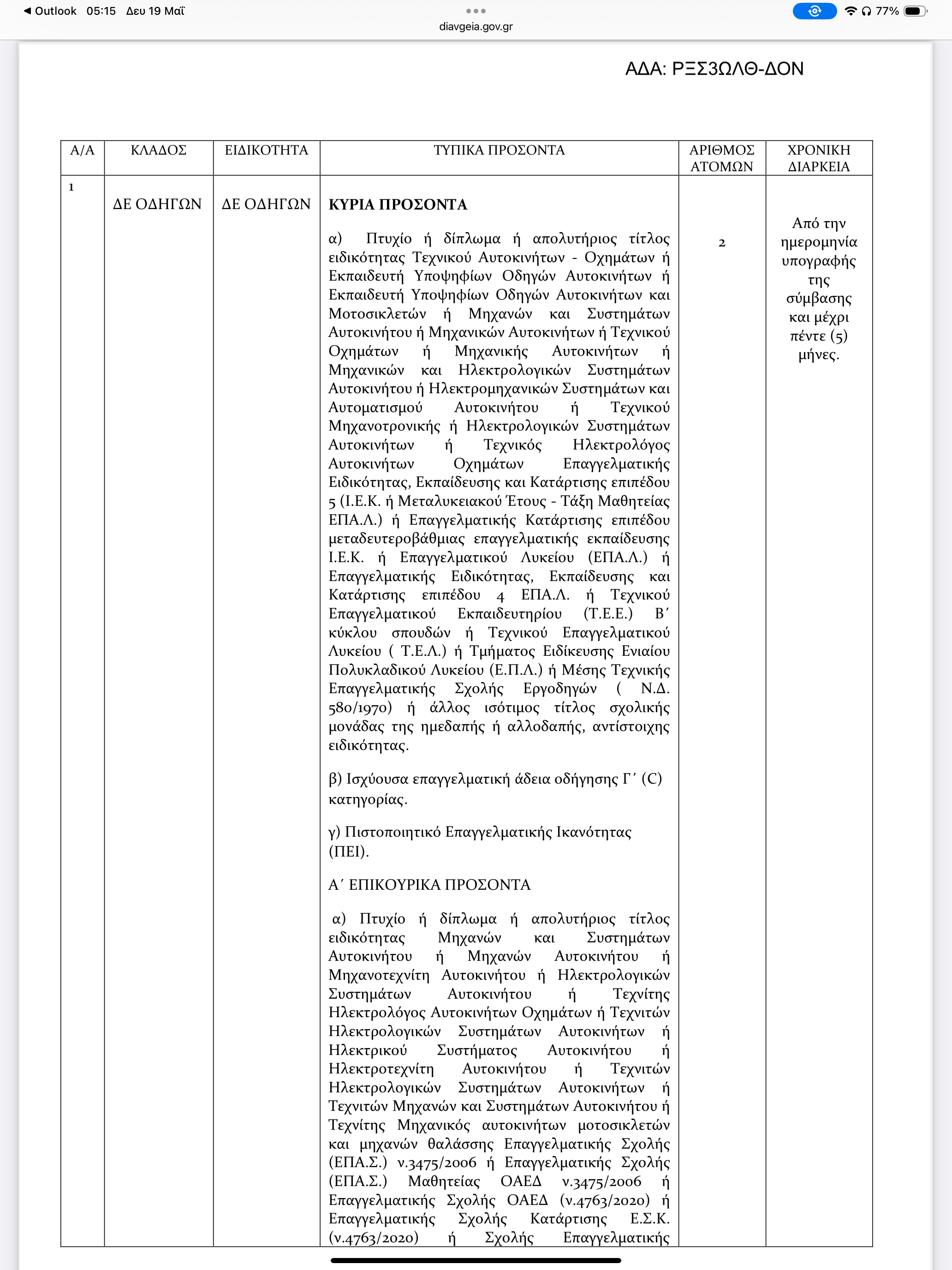 • 2 θέσεις ΔΕ Οδηγών, με βασικά προσόντα: