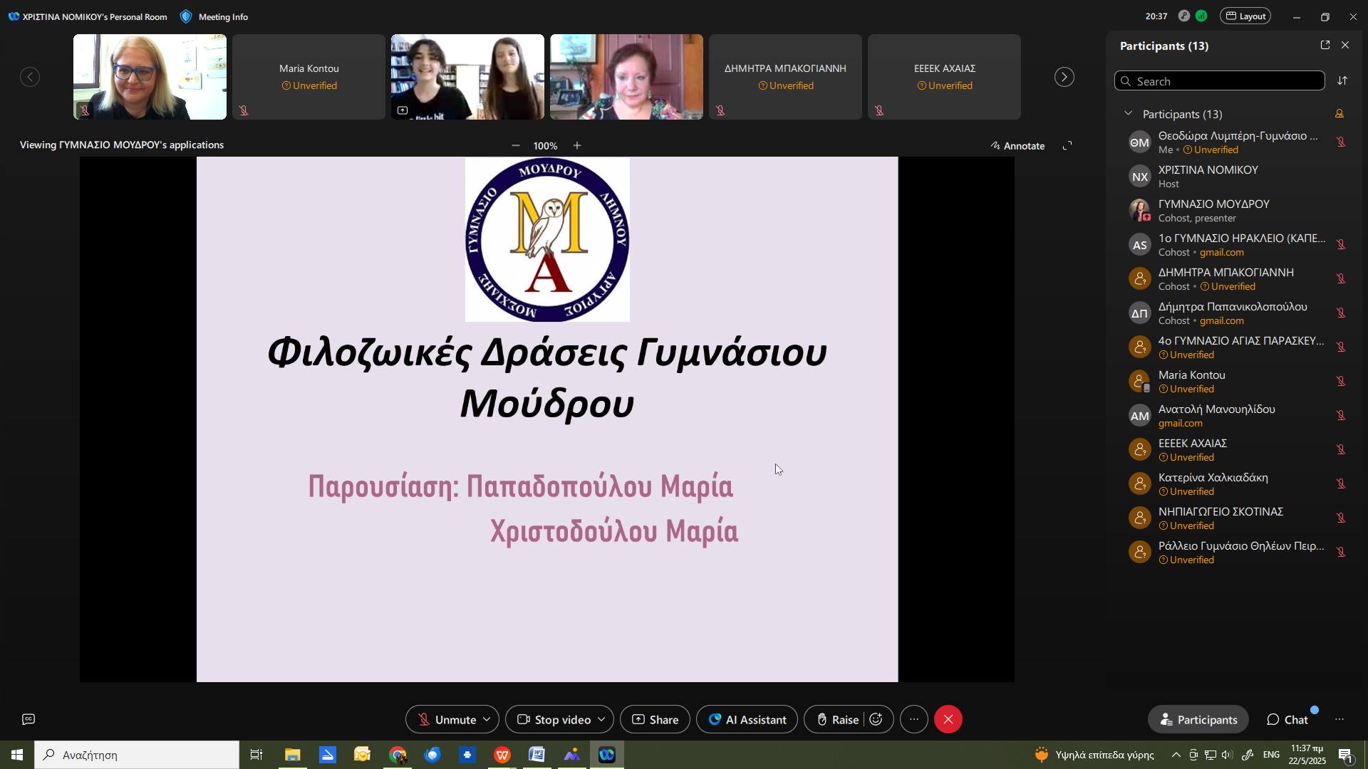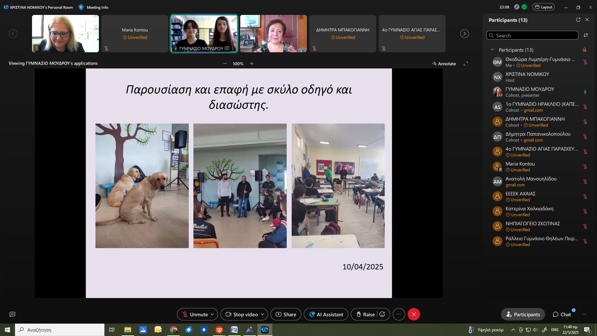 Την παρουσίαση ανέλαβαν οι μαθήτριες της Α’ τάξης, Μαρία Παπαδοπούλου και Μαρία Χριστοδούλου, οι οποίες, με τη στήριξη και καθοδήγηση του υπεύθυνου εκπαιδευτικού κ. Λύσανδρου Καραπάνου, μετέφεραν στους συμμετέχοντες το αποτύπωμα της ευαισθητοποίησης και της ενεργής συμμετοχής του σχολείου στο πρόγραμμα φιλοζωίας.