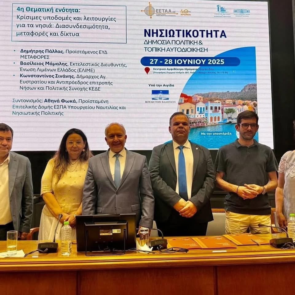 Ο Δήμαρχος Αγίου Ευστρατίου, που συμμετείχε και ως Αντιπρόεδρος της Επιτροπής Νήσων και Πολιτικής Συνοχής, στην παρέμβασή του, αναφέρθηκε εκτενώς σε ζητήματα υποδομών και λειτουργιών που απασχολούν τα μικρά νησιά, ενώ συμμετείχε και στο τελικό πάνελ του συνεδρίου, όπου συζητήθηκαν τα συμπεράσματα και οι προτάσεις για την ενδυνάμωση των νησιωτικών Δήμων και των πολιτικών στήριξής τους.