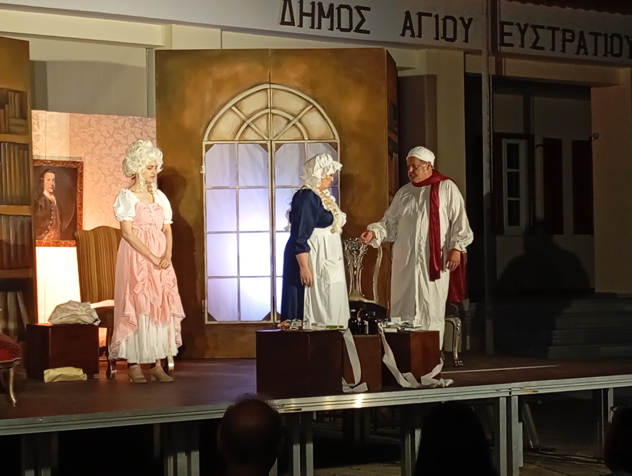 Η κλασική κωμωδία του Μολιέρου, σε σκηνοθεσία Κώστα Κιμούλη και θεατρική διασκευή της Τάνιας Χαροκόπου και του Φώτη Σπύρου, χάρισε άφθονο γέλιο στους κατοίκους και επισκέπτες του νησιού.