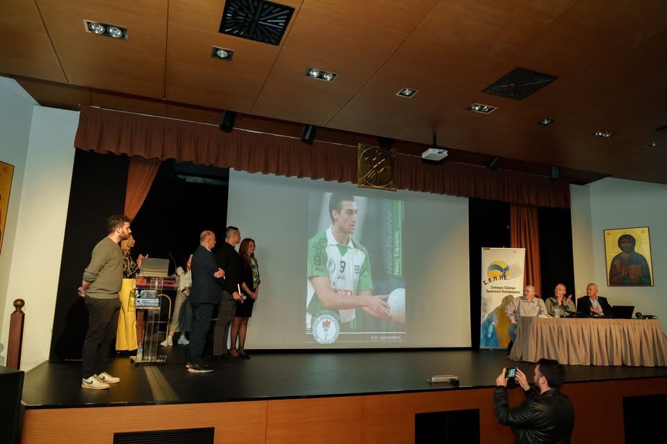 Ο Σύνδεσμος Ελλήνων Προπονητών Πετοσφαίρισης και ο πρόεδρός του Γιώργος Σαμαράς απένειμαν αναμνηστική διάκριση, αναγνωρίζοντας τη σπουδαία πορεία και την προσφορά του «αετού» του ελληνικού βόλεϊ.