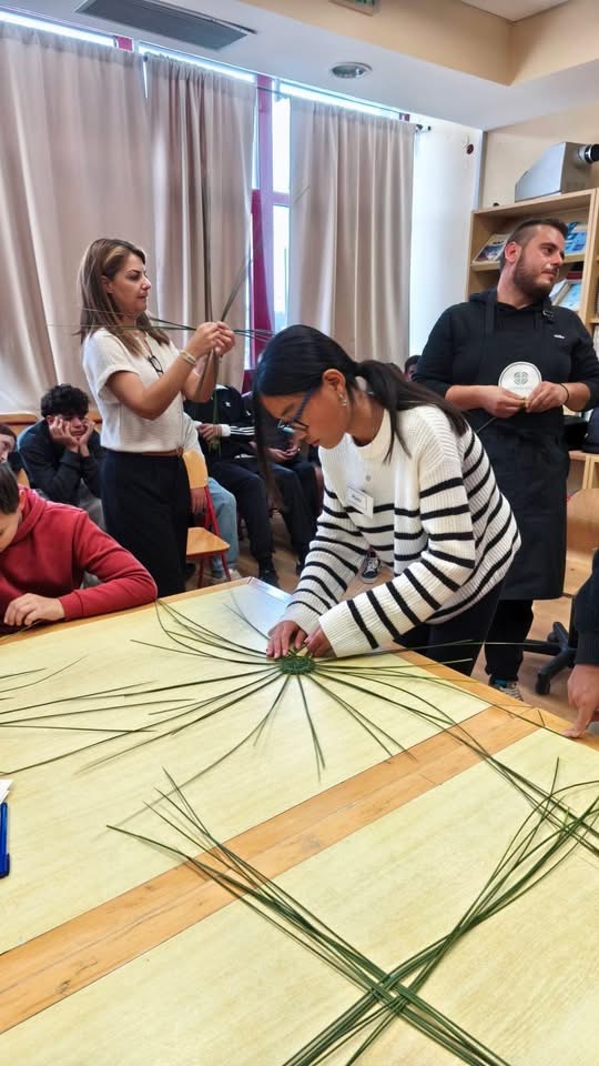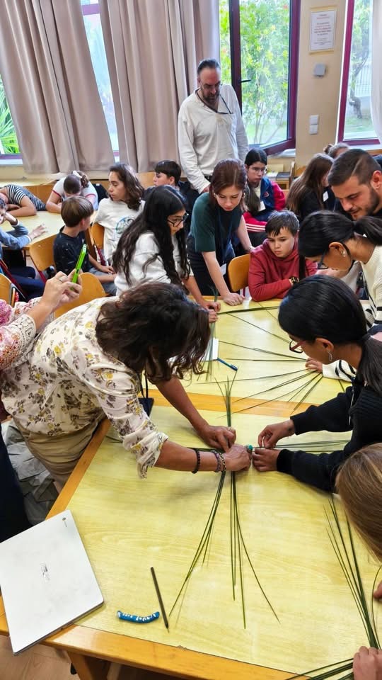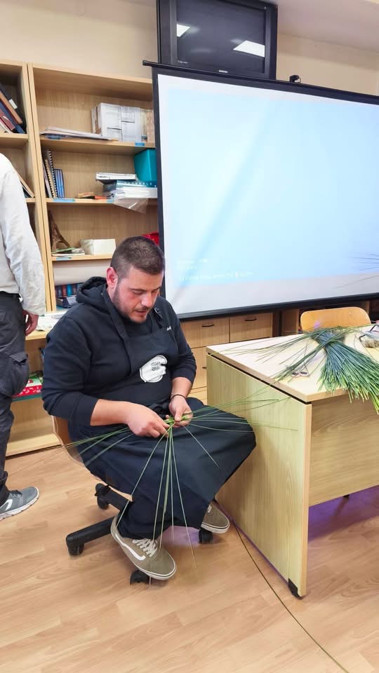 Ο κ. Γιαννέλης ανέλυσε τα ιδιαίτερα χαρακτηριστικά της πολιτιστικής ταυτότητας της Λήμνου και συντόνισε ένα βιωματικό εργαστήριο καλαθοπλεκτικής τυρβολιών, δίνοντας στους μαθητές την εμπειρία να δημιουργήσουν οι ίδιοι τα παραδοσιακά καλαθάκια που συνδέονται με την τυροκομική παράδοση του τόπου!