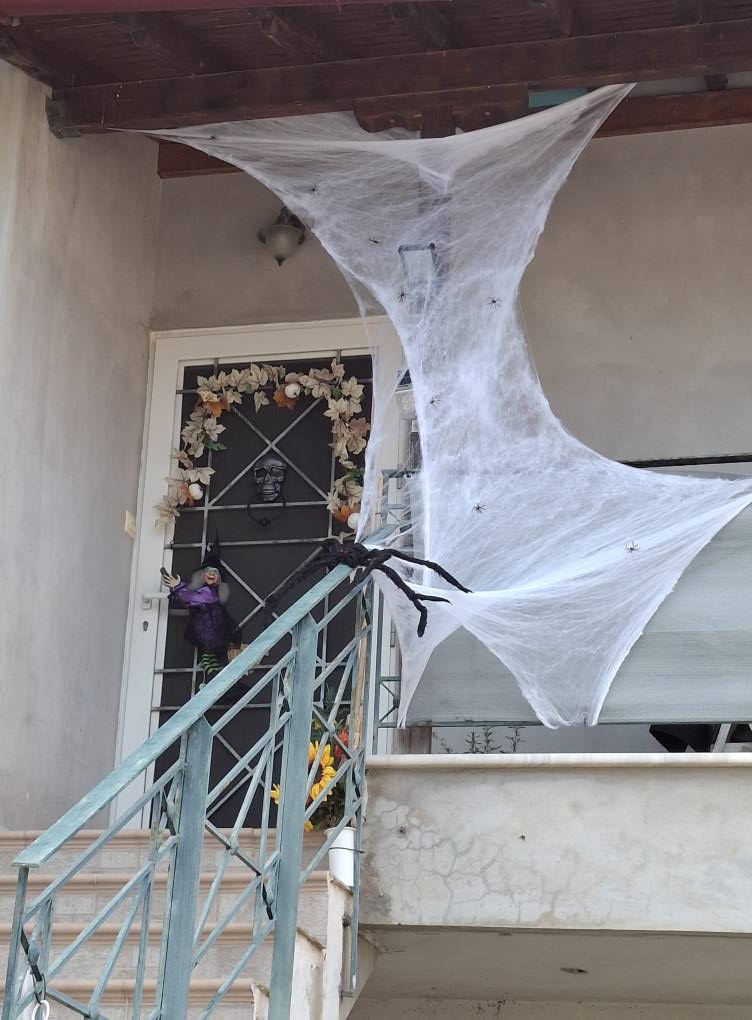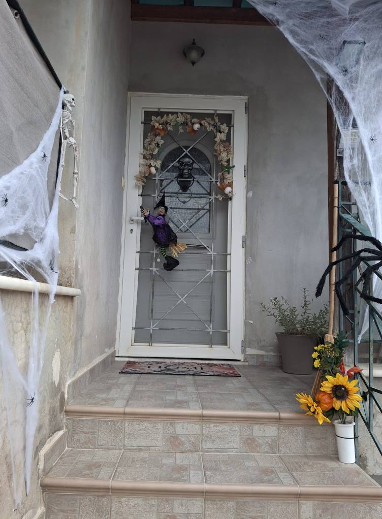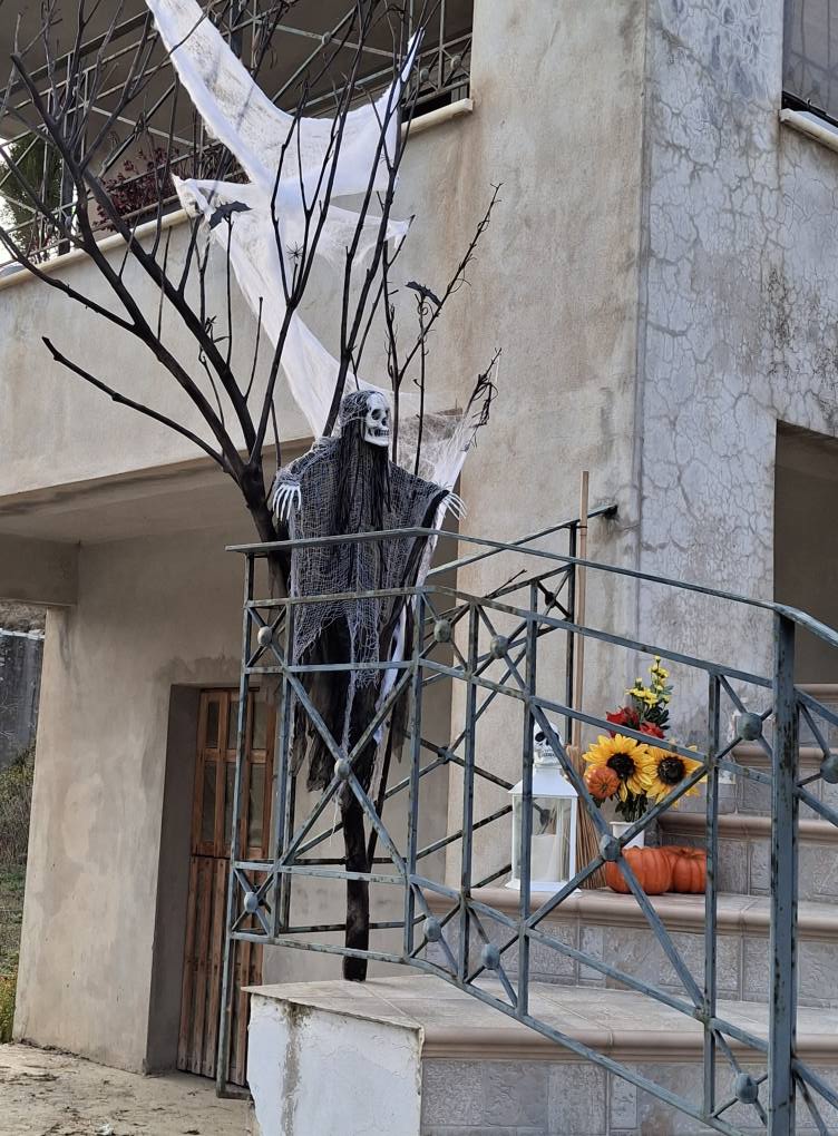 Ο στολισμός περιλαμβάνει τρομακτικά φαντάσματα, κολοκύθια με χαραγμένα πρόσωπα και αράχνες και ιστούς αλλά και νεκροκεφαλές, δημιουργώντας ένα μαγευτικό σκηνικό. Παρά το γεγονός ότι το Halloween δεν αποτελεί παραδοσιακή γιορτή για το νησί, η Μαρία κατάφερε να φέρει το μυστηριώδες και το φαντασμαγορικό στο σπίτι της, προσκαλώντας όσους περνούν για μια δόση τρόμου και μαγείας.