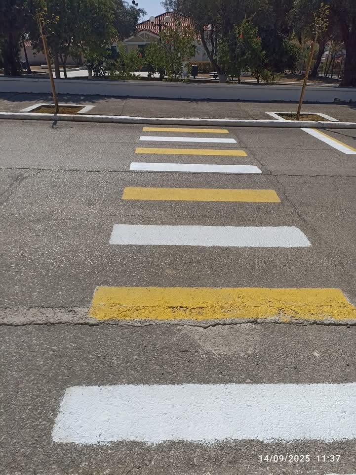 Φρεσκάραμε και βάψαμε τις διαβάσεις πεζών περιμετρικά της πλατείας.