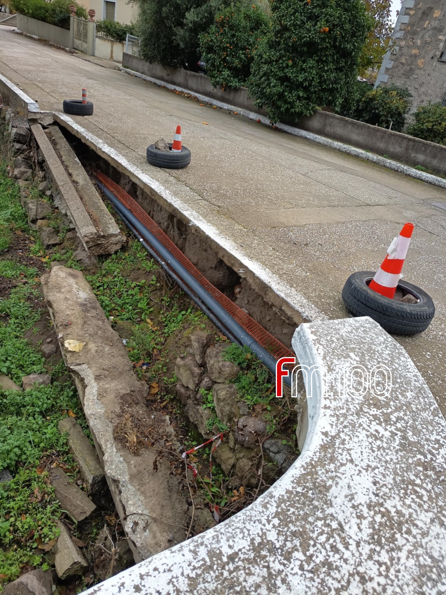 Οι εικόνες αποτυπώνουν τη φθορά του δρόμου και την προσωρινή σήμανση που παραμένει στη θέση της εδώ και μήνες, προκαλώντας την αγανάκτηση των κατοίκων.