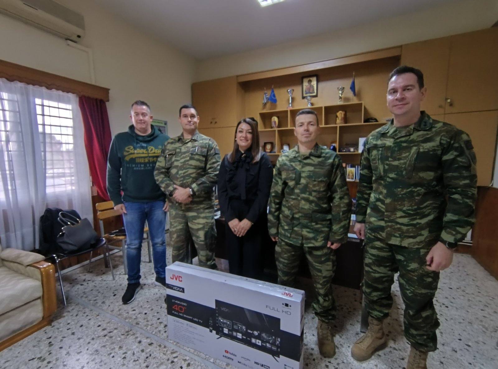 Κατά την επίσκεψη, η Πρόεδρος της Ένωσης, Αθανασία Φαράντου, και ο Γενικός Γραμματέας, Ηρακλής Κοντογιάννης, παρέδωσαν μια τηλεόραση υψηλής ευκρίνειας με σκοπό την υποστήριξη και αναβάθμιση της λειτουργίας του Ηλεκτρονικού Συστήματος Ασφαλείας (Η.Σ.Α.) του στρατοπέδου.