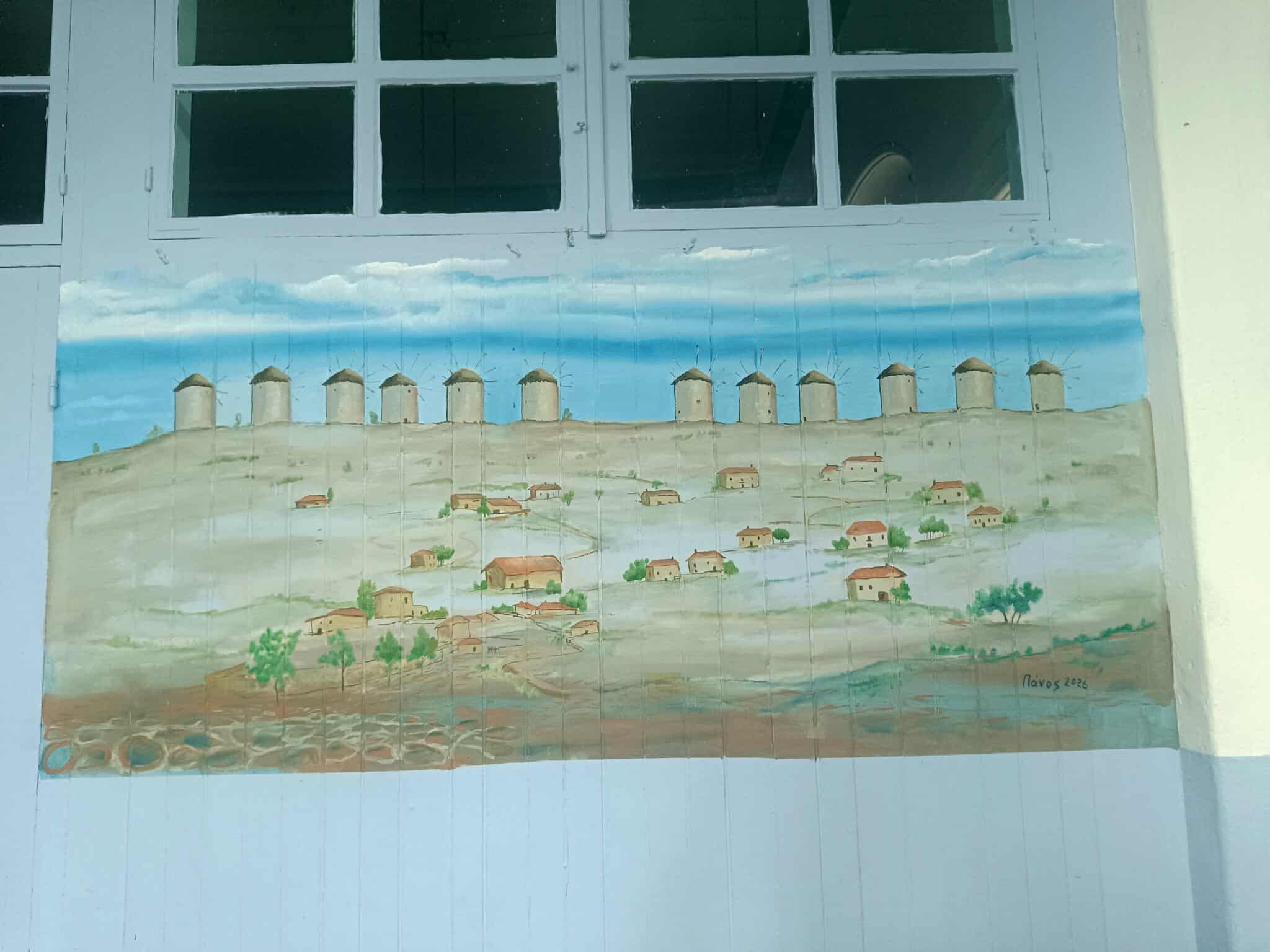 Με τα πινέλα και τις μπογιές του, αλλά κυρίως με τη βαθιά του σύνδεση με τον τόπο, ο Παναγιώτης μετέφερε στο εσωτερικό του χώρου ένα σημαντικό τοπόσημο του χωριού!