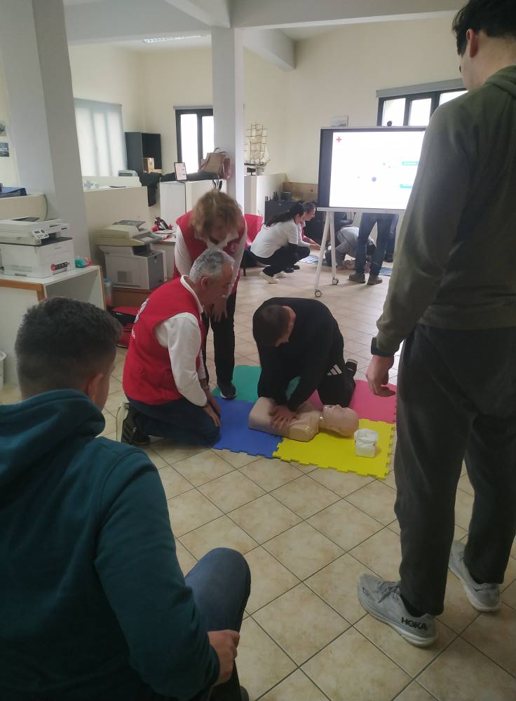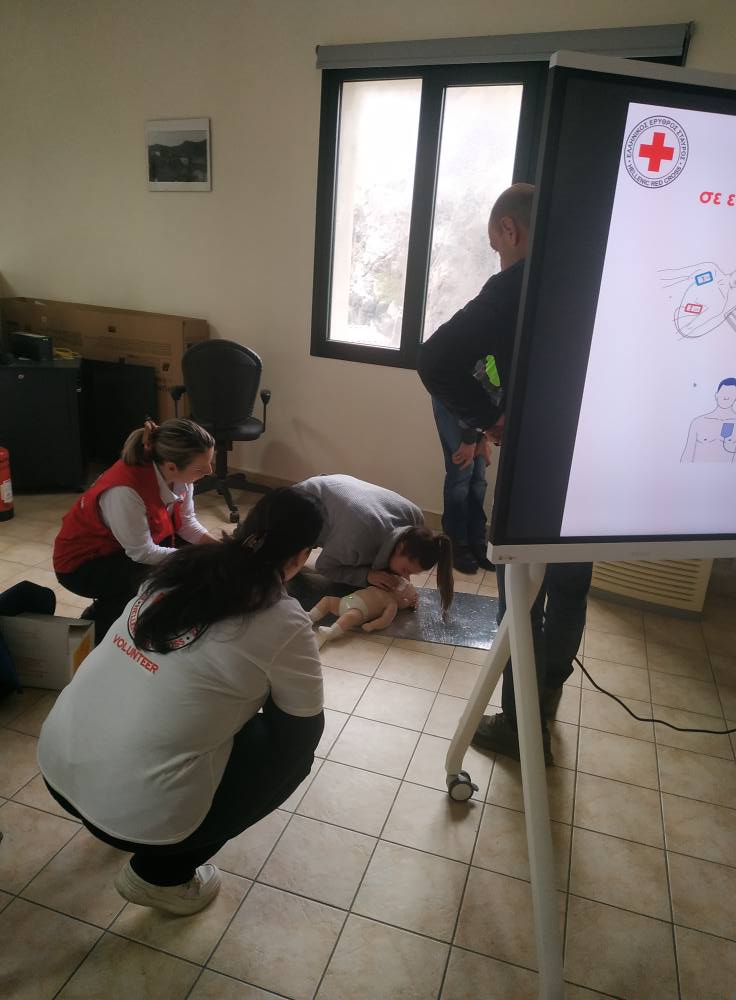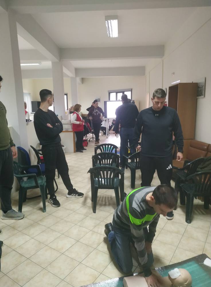 Την εκπαίδευση ανέλαβαν οι πιστοποιημένες εθελόντριες εκπαιδεύτριες του Τομέα Υγείας του Περιφερειακού Τμήματος Λήμνου-Αγίου Ευστρατίου, κ. Αλεξάνδρα Τζιρτή και κ. Βασιλική Καραγιάννη, με τη συνδρομή των εθελοντών κ. Χρήστου Γεωργίου, κ. Βίκης Ματθαίου, κ. Φωτεινής Γιαμάκου και κ. Ελένης Ρούφου. Η δράση πραγματοποιήθηκε στην αίθουσα του Λιμεναρχείου Μύρινας, με την ενεργή στήριξη του Λιμενάρχη, κ. Χρήστου Καλτσούνη, και την παρουσία του Προέδρου του τοπικού τμήματος ΕΕΣ, κ. Δημητρίου Αχιλαδέλλη.