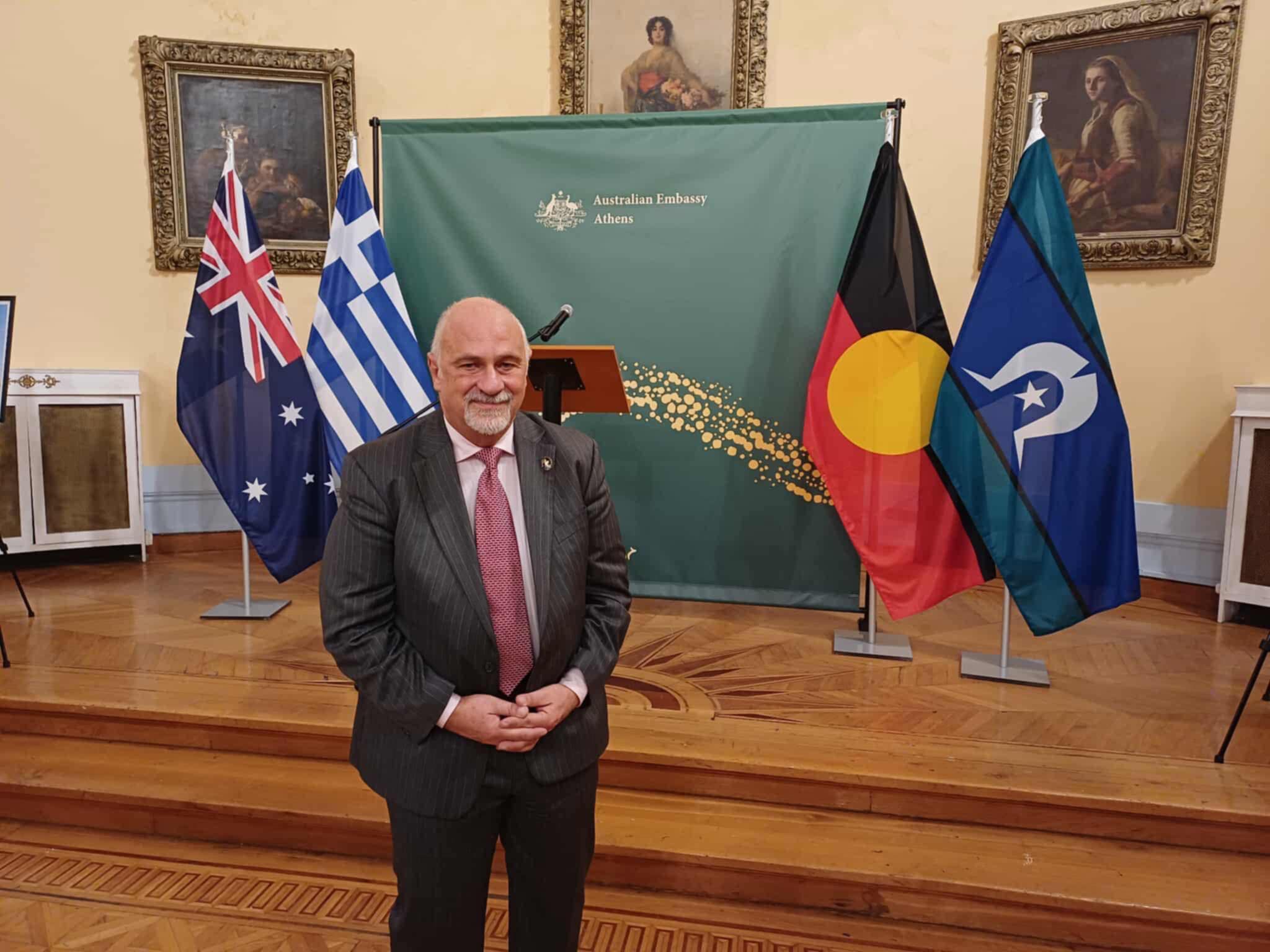 Στο περιθώριο της δεξίωσης που ακολούθησε, ο κ. Μπουλώτης είχε την ευκαιρία να συζητήσει με την Πρέσβη Alison Duncan και τον Επιτετραμμένο κ. Scully για τα επόμενα στάδια υλοποίησης του Μονοπατιού Μνήμης, τους επικείμενους εορτασμούς του ANZAC Day στη Λήμνο, αλλά και για τη σημασία που έχει το έργο στην ενίσχυση του ιστορικού τουρισμού και στην περαιτέρω σύσφιξη των δεσμών ανάμεσα στη Λήμνο και την Αυστραλία.