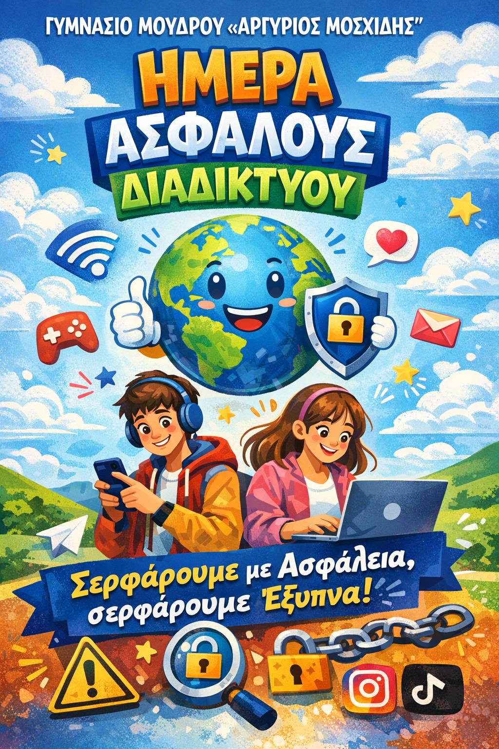 Το μήνυμα της φετινής συμμετοχής αποτυπώθηκε και στην αφίσα που δημιούργησαν οι μαθητές: «Σερφάρουμε με ασφάλεια, σερφάρουμε έξυπνα».