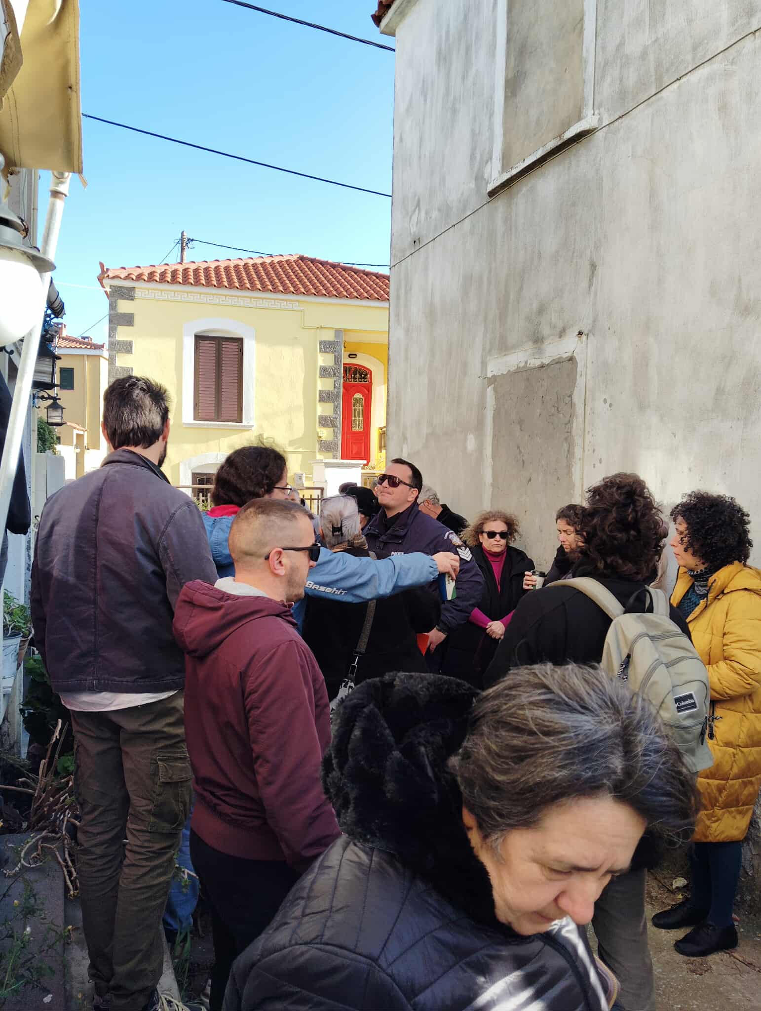Κατά την άφιξή της η δικαστική επιμελήτρια, διαπίστωσε την παρουσία συγκεντρωμένων πολιτών οι οποίοι βρέθηκαν εκεί για να αποτρέψουν την αποβολή του προηγούμενου ιδιοκτήτη από το ακίνητο.