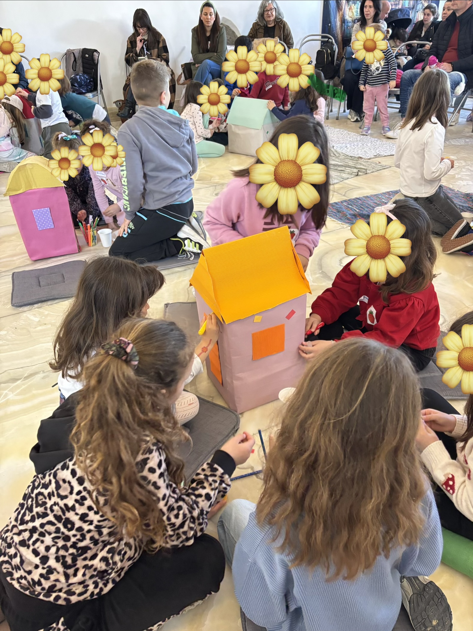Τα παιδιά συμμετείχαν ενεργά σε όλη τη διάρκεια της εκδήλωσης και παράλληλα με τις αφηγήσεις «έκλεισαν σε μπαλόνια» τις φωνές τους, έφτιαξαν «το σπιτάκι της φιλίας» και έπαιξαν το παιχνίδι του χαμένου θησαυρού αναζητώντας ευφάνταστα υλικά (δραστηριότητες εμπνευσμένες από τα παραμύθια που άκουσαν). Τέλος, η εκδήλωση έκλεισε με μουσική και τραγούδι.