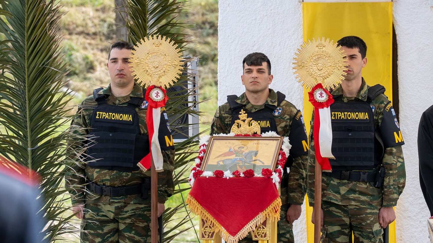 «Στο πλαίσιο του εορτασμού του Τροπαιοφόρου Μεγαλομάρτυρα Αγίου Γεωργίου, προστάτη του Στρατού Ξηράς, η 88 ΣΔΙ «ΛΗΜΝΟΣ» πραγματοποίησε επίσημο εορτασμό στο Στρατόπεδο «ΥΠΛΧΟΥ ΚΑΡΔΑΜΗΛΑ ΔΗΜΗΤΡΙΟΥ», στο Λιβαδοχώρι Λήμνου, την Πέμπτη 23 Απριλίου 2026.