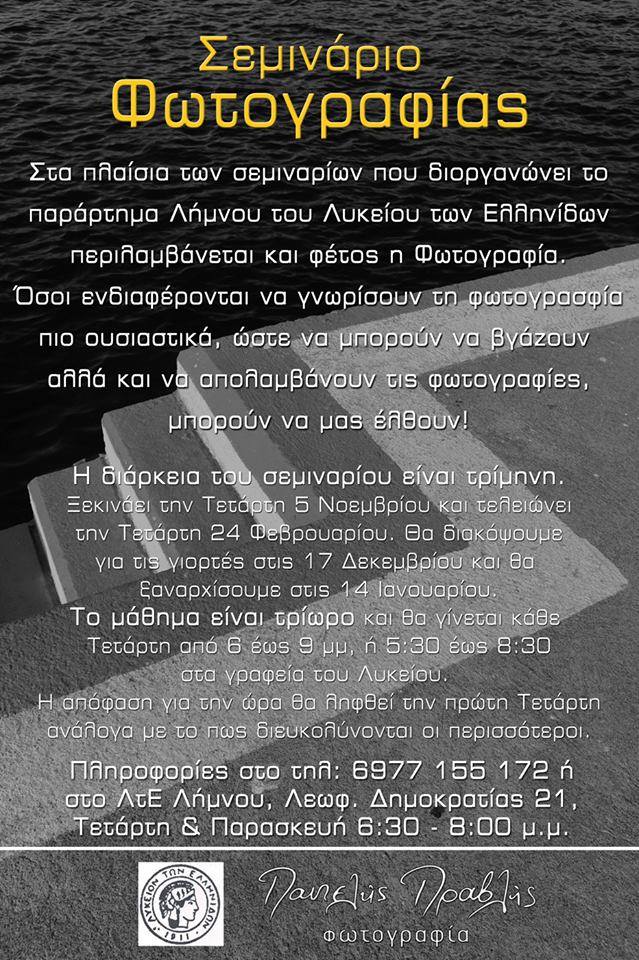 Αρχές Νοεμβρίου ξεκινά και το τμήμα φωτογραφίας.