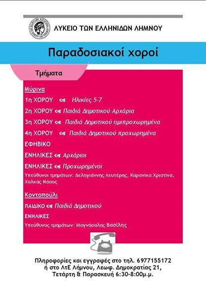 Για περισσότερες πληροφορίες και εγγραφές μπορείτε να καλείτε στο 6977 155172.