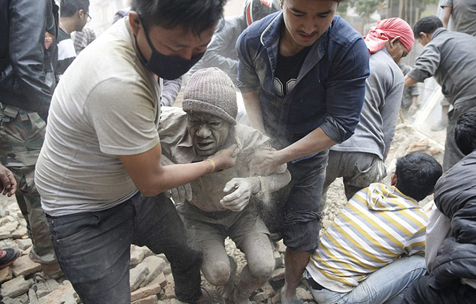 Η εικόνα του κατεστραμμένου μεγάλου πύργου Νταραχάρα, μνημείου του 19ου αιώνα, είναι το σύμβολο της ισοπέδωσης του ιστορικού κέντρου του Κατμαντού μετά τον φονικό σεισμό που συγκλόνισε τη χώρα.