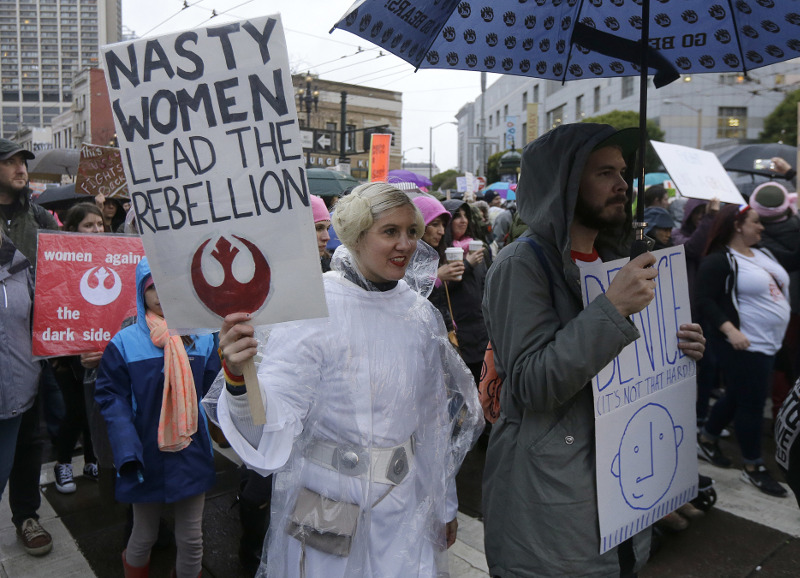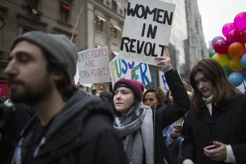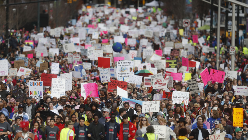 Με πολλές να φορούν τα ροζ σκουφάκια, ένα από τα σύμβολα της διαμαρτυρίας, οι περισσότερες εξέφραζαν τον θυμό τους για τον τρόπο που ο Τραμπ αντιμετωπίζει τις γυναίκες και μιλά για εκείνες, ενώ άλλες θέλησαν να «φωνάξουν» ενάντια στις θέσεις του για τους Μουσουλμάνους και τους μετανάστες, εκφράζοντας φόβους ότι η χώρα θα επιστρέψει στην άσχημη εποχή των φυλετικών διακρίσεων.