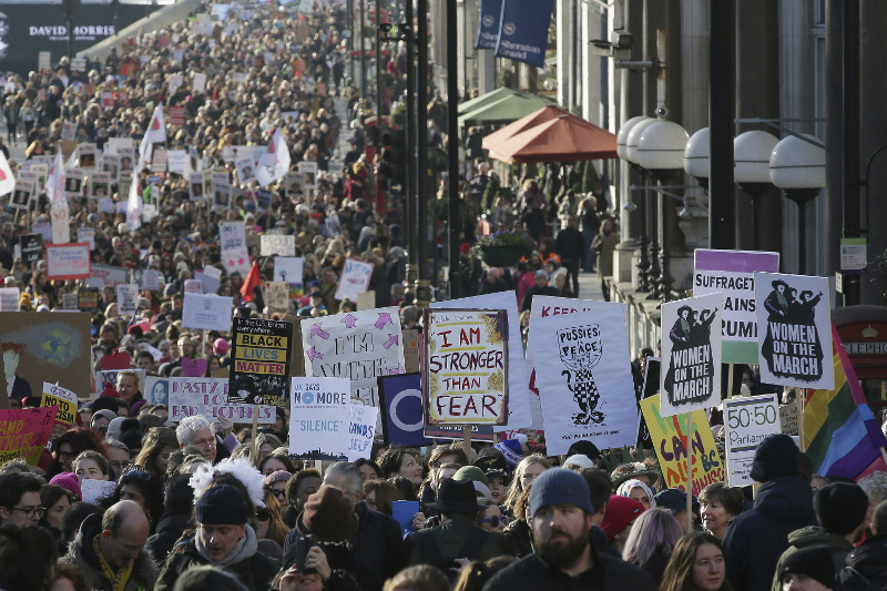 Στο Λονδίνο, σύμφωνα με τους διοργανωτές, 100.000 άνθρωποι βγήκαν στους δρόμους. Γυναίκες, άνδρες, παιδιά, φώναζαν συνθήματα κατά του Αμερικανού προέδρου και απαιτούσαν ίσα δικαιώματα. Κι εκεί δεν έλειψαν οι σταρ.