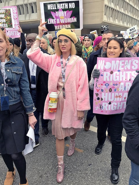Η Κέιτι Πέρι επίσης έδωσε το παρών, μαζίμε την αδελφή της. «Πρέπει να είμαστε όλες φύλακες η μία της άλλης. Διαδηλώνω σήμερα γιατί δεν φοβάμαι πλέον και ελπίζω ότι μπορώ να είμαι παράδειγμα αντοχής και θάρρους. Δεν θα επιτρέψω σε κανέναν να με καταπιέσει, να με κάνει να σιωπήσω ή να κόψει τα φτερά μου», έγραψε η Πέρι στα social media.