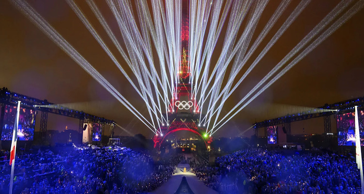 Η διάσημη τραγουδίστρια Lady Gaga τραγούδησε ένα γαλλικό τραγούδι-καμπαρέ κοντά στον καθεδρικό ναό της Παναγίας των Παρισίων, οι αθλητές επευφημήθηκαν από το πλήθος κατά μήκος του Σηκουάνα στη ναυτική παρέλαση που έγινε υπό την καταρρακτώδη βροχή, ενώ οι χορευτές ανέβηκαν στις στέγες του Παρισιού στην Τελετή ΄Έναρξης των Ολυμπιακών Αγώνων, που ξεκίνησε λίγο μετά τις 20:30 (ώρας Ελλάδας).