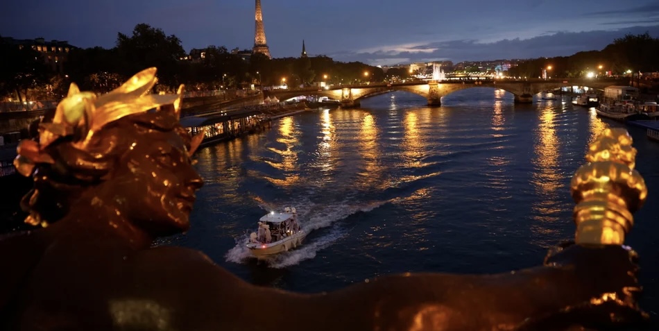 Το σκάφος της Ελλάδας, διέσχισε τη γέφυρα Αούστερλιτς , γύρω στις 20:40 όταν ένας τοίχος με νερό που χύνεται κάτω από τη γέφυρα άνοιξε, ελευθερώνοντας το πέρασμα για αυτό το σκάφος, το πρώτο από τα 85 που πρέπει να μεταφέρει περισσότερους από 6.500 αθλητές στο Τροκαντερό.