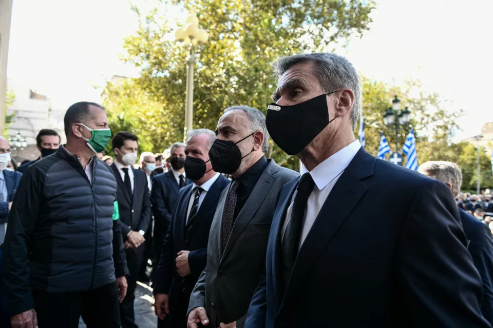 Η πομπή πέρασε περιμετρικά της Πλατείας Συντάγματος και ακολούθως έξω από τη Βουλή. Κόσμος βρισκόταν σε κάθε γωνιά της διαδρομής.