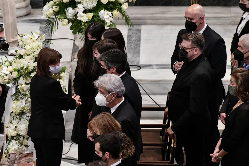 Η οικογένεια της προέδρου του ΚΙΝΑΛ, τα τρία της παιδιά, ο σύζυγός της, η αδελφή της και η ανιψιά της, συνεργάτες, φίλοι, ηγετικά στελέχη της δημοκρατικής προοδευτικής παράταξης μαζί με την πολιτειακή και πολιτική ηγεσία της χώρας βρίσκονταν ήδη στη Μητρόπολη Αθηνών. Λίγα λεπτά πριν από τις 2 μ.μ. στη Μητρόπολη εισήλθαν ο πρωθυπουργός με τη σύζυγό του Μαρέβα, ο Αλέξης Τσίπρας, ο πρόεδρος της Βουλής Κώστας Τασούλας, ο γγ του ΚΚΕ Δημήτρης Κουτσούμπας, ο γγ του ΜέΡΑ 25 Γιάνης Βαρουφάκης, η Νίκη Κεραμέως, ο Χρήστος Σταϊκούρας, ο Τάκης Θεοδωρικάκος, ο Κυριάκος Πιερακκάκης. Ακόμη, ο Βαρδής και η Μαριάννα Βαρδινογιάννη, η Γιάννα Αγγελοπούλου, ο Γιώργος Βαρδινογιάννης, η Ντόρα Μπακογιάννη με τα παιδιά της, Κώστα και Αλεξία. Ακολούθως, εισήλθε στη Μητρόπολη η Πρόεδρος της Δημοκρατίας Κατερίνα Σακελλαροπούλου.