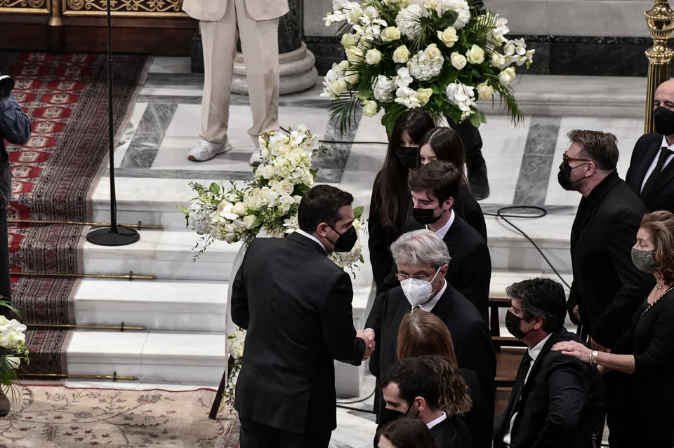 Ο πρωθυπουργός στάθηκε ιδιαίτερα στα τρία παιδιά της Φώφης Γεννηματά, φέρνοντας το χέρι στους ώμους τους και προσπαθώντας να τους πει δυο λόγια που θα μπορούσαν να απαλύνουν κάπως τον πόνο τους.