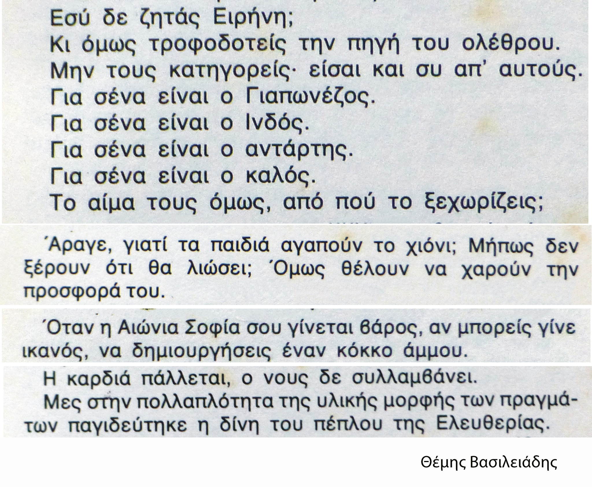 Ο Γιάννης Γκαλιούρης, μέσα από το κείμενό του, αποδίδει φόρο τιμής σε εκείνη την παρέα των «ευαίσθητων και ανδρείων», όπως τους χαρακτηρίζει, που τόλμησαν να αναμετρηθούν με τα όρια της καθημερινότητας και να αναζητήσουν την αλήθεια πέρα από τα συμβατικά πλαίσια της εποχής.