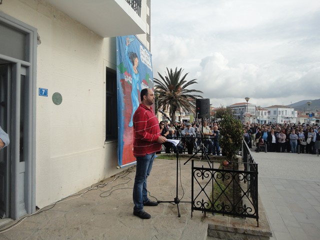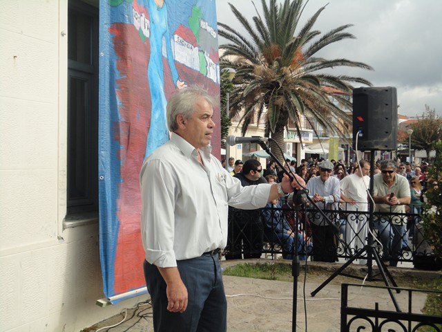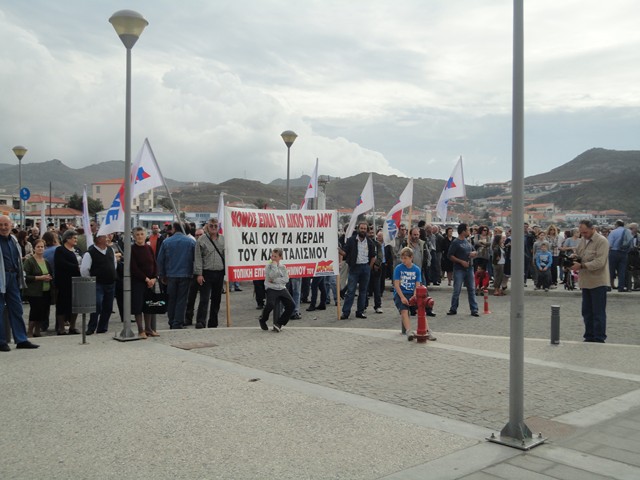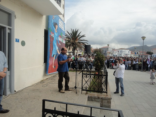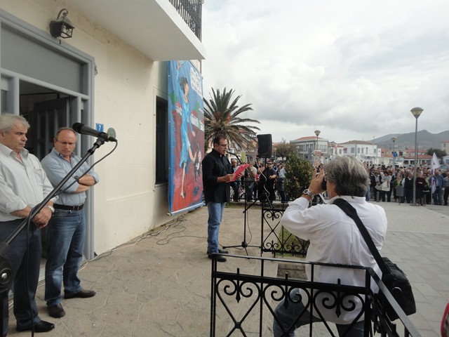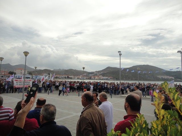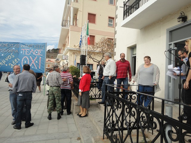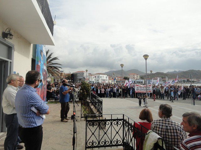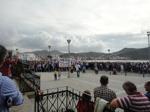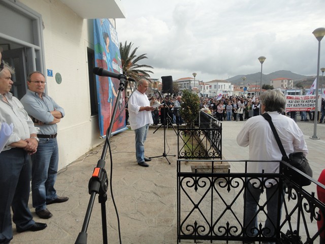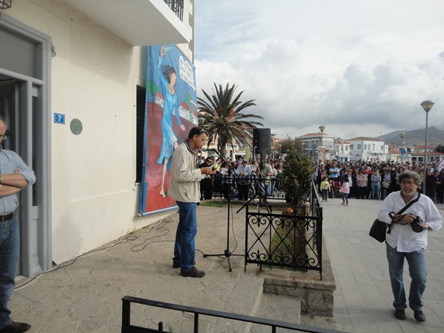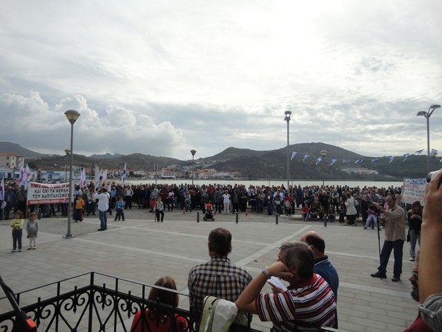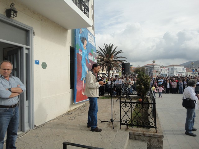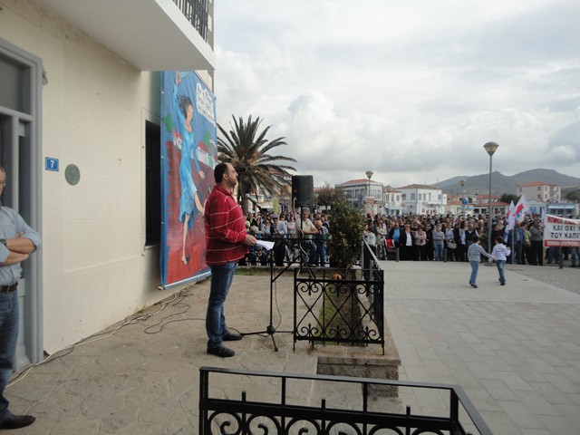 Κατα γενική ομολογία, την πιο επαναστατική τοποθέτηση κατά τη διάρκεια της συγκέντρωσης, έκανε ο Δήμαρχος του Αγίου Ευστρατίου, ο οποίος τόνισε οτι "πρέπει να πούμε ΟΧΙ στις πολιτικές που διώχνουν τα νέα παιδιά από τα νησιά μας. Πρέπει να πούμε ΟΧΙ στη φτωχοποίηση του λαού μας", για να καταλήξει: "Κοπιάστε ωρέ αν σας βαστάει. Μολών Λαβέ".