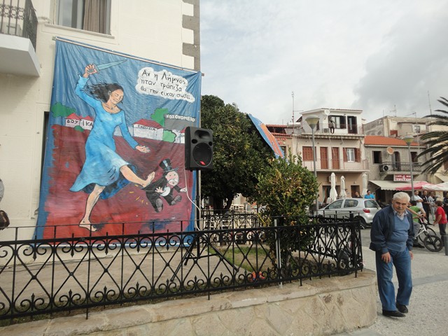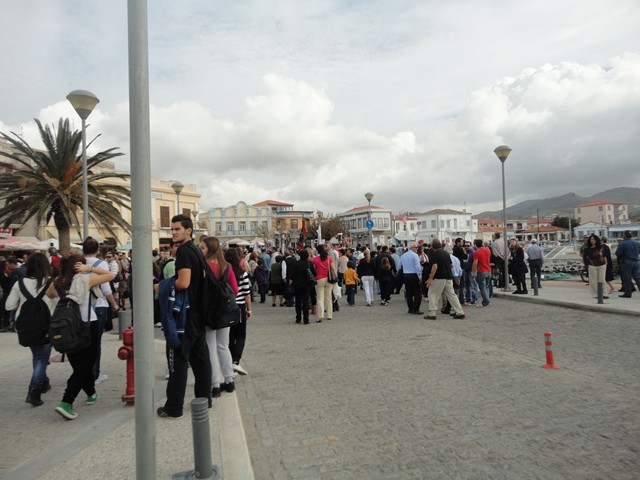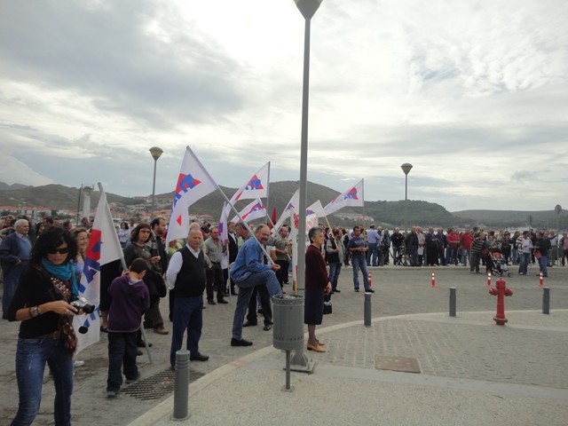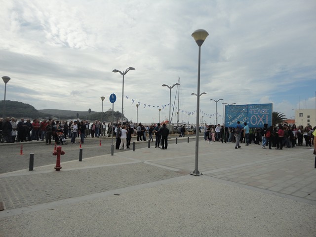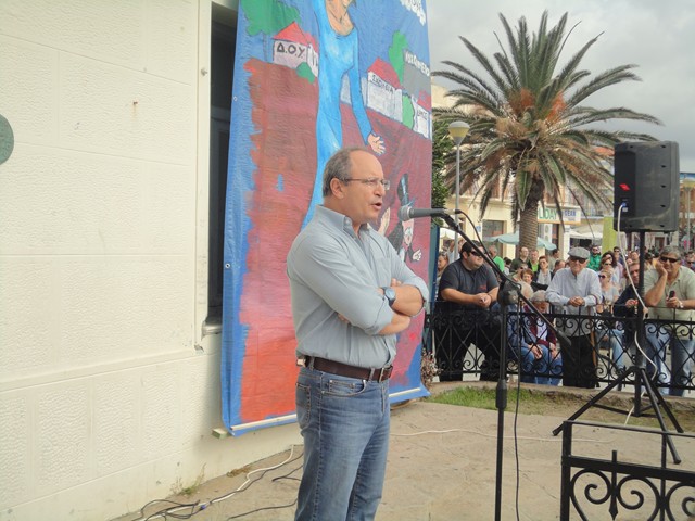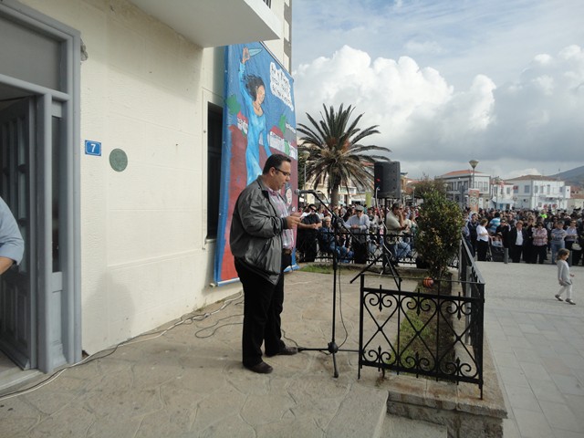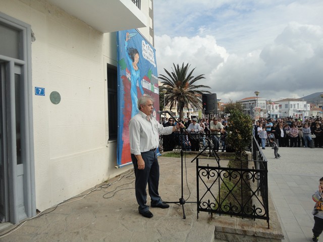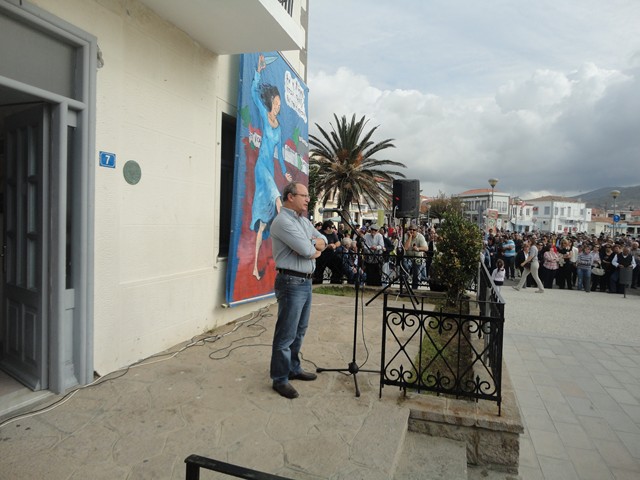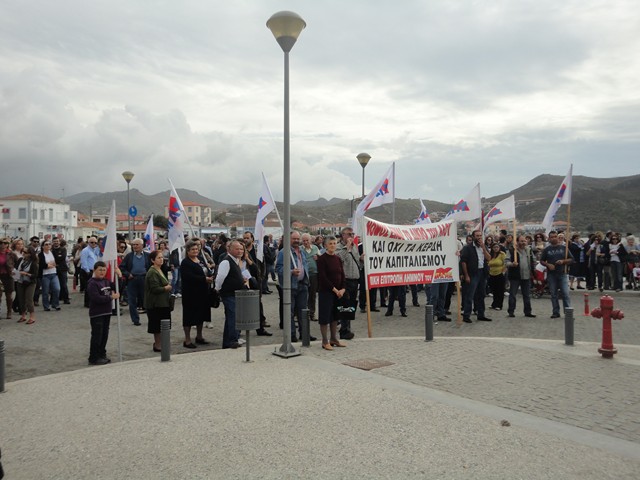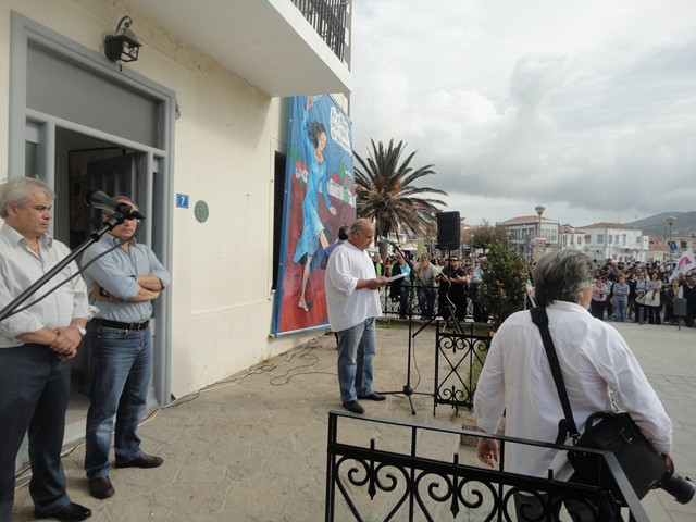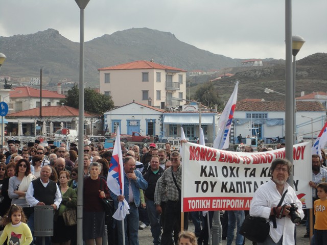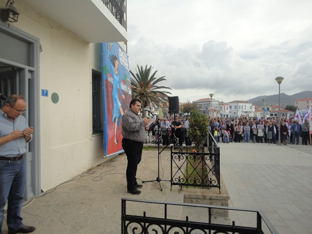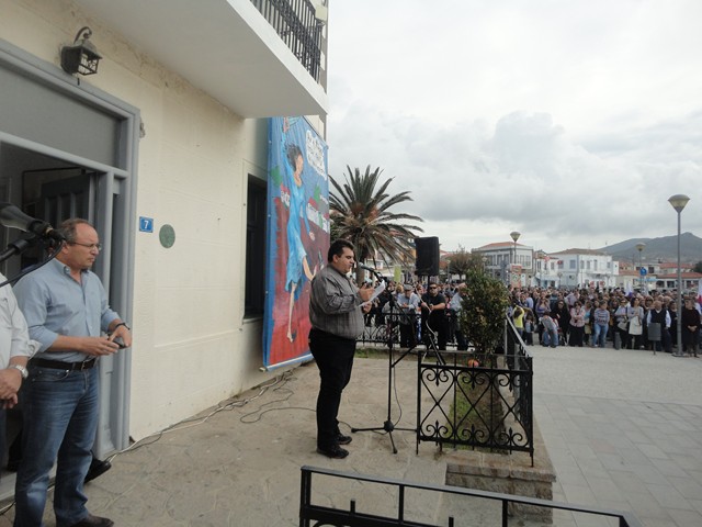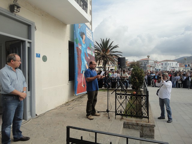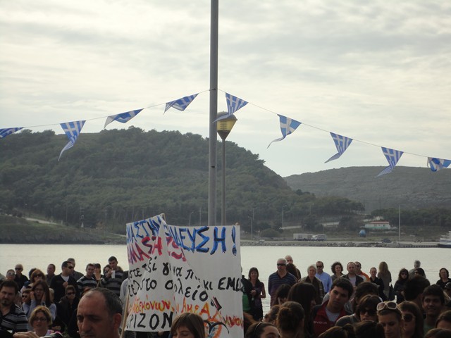 Κατα γενική ομολογία, την πιο επαναστατική τοποθέτηση κατά τη διάρκεια της συγκέντρωσης, έκανε ο Δήμαρχος του Αγίου Ευστρατίου, ο οποίος τόνισε οτι "πρέπει να πούμε ΟΧΙ στις πολιτικές που διώχνουν τα νέα παιδιά από τα νησιά μας. Πρέπει να πούμε ΟΧΙ στη φτωχοποίηση του λαού μας", για να καταλήξει: "Κοπιάστε ωρέ αν σας βαστάει. Μολών Λαβέ".