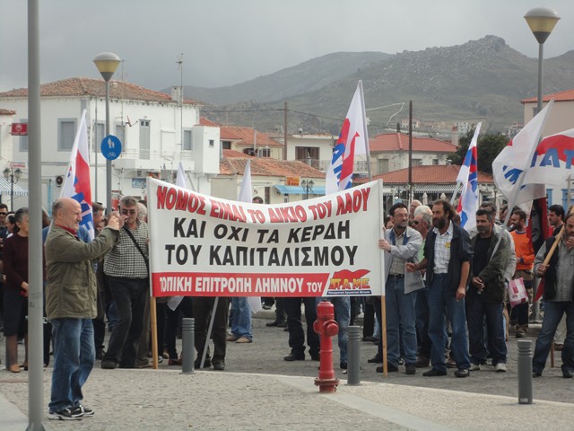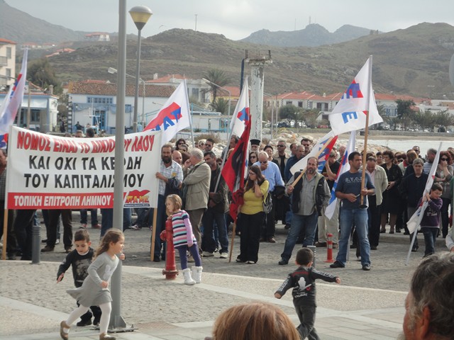 Ακολούθησε ο Παλαιολόγος Κυριαζής, πρόεδρος του Συλλόγου Ατόμων και φίλων Ατόμων με Ειδικές Ανάγκες "Ορίζοντες", ο οποίος τόνισε ιδιαίτερα την ασύλληπτη ταλαιπωρία των Ατόμων με Ειδικές Ανάγκες, από την έλλειψη λειτουργίας ΚΕΠΑ στη Λήμνο, ο Κώστας Μαδυτινός πρόεδρος του Τοπικού Παραρτήματος της ΑΔΕΔΥ και εκπρόσωπος των συνδικαλιστικών σωματείων του νησιού, ο Χρυσόστομος Ψάρρας εκπρόσωπος του Εμπορικού Συλλόγου Λήμνου.