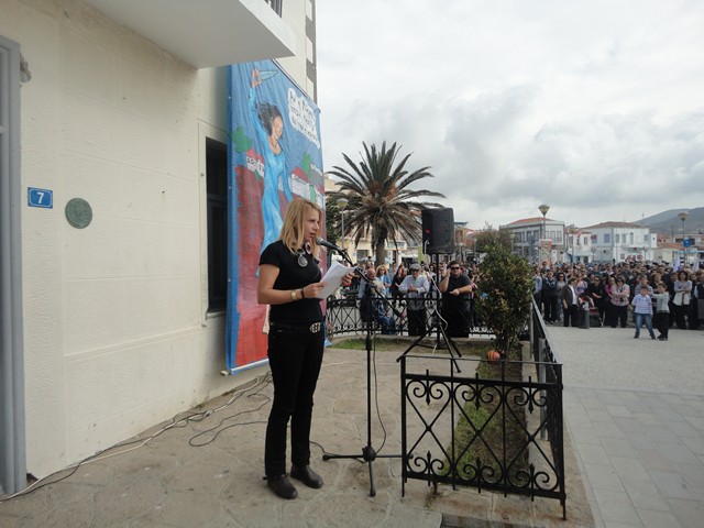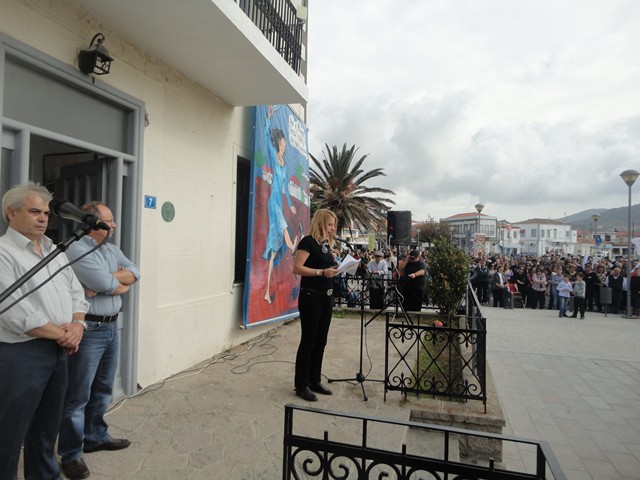 Την πεμπτουσία των αιτιών της κρίσης, συμπίκνωσε στην ομιλία της, σε μια φράση η εκπαιδευτικός, εκπρόσωπος της ΕΛΜΕ Λήμνου, Αδριανή Δανιήλ: "Εάν είχαμε Παιδεία δεν θα είχαμε κρίση".