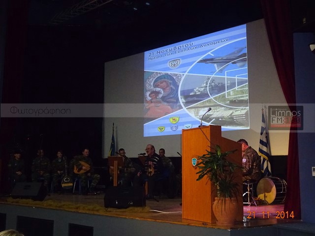 Στην εκδήλωση "το παρών έδωσαν" ακόμη, ο Ταξίαρχος Λάμπρος Τζούμης, ο Αντιπεριφερειάρχης Κώστας Αδαμίδης, ο Έπαρχος Λήμνου Βαγγέλης Γιαρμαδούρος, ο Δήμαρχος Λήμνου Νίκος Μαρινάκης, ο Υποδιοικητής Ταξιαρχίας, ο Μητροπολίτης Λήμνου και Αγίου Ευστρατίου κ.κ Ιερόθεος, ο Διευθυντής Θρησκευτικών ΓΕΕΘΑ Νικόλαος Γουρδούπης (1ος Στρατιωτικός Ιερέας της Λήμνου), ενώ την εκδήλωση «έντυσε» μουσικά με παραδοσιακά τραγούδια ο μουσικολόγος-λαογράφος Παναγιώτης Μυλωνάς.
