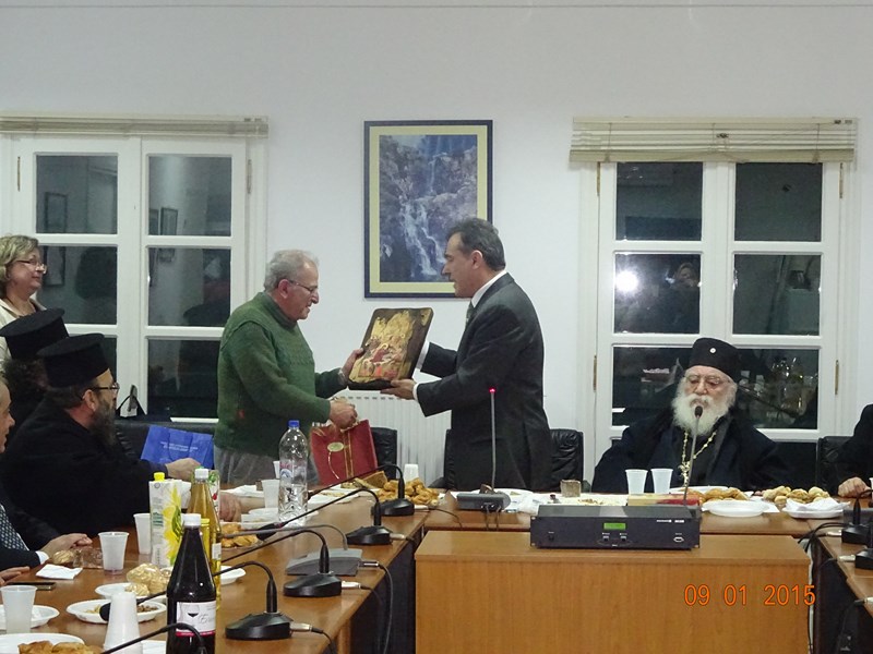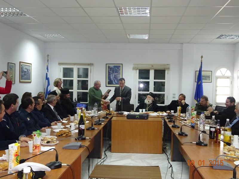 Αμέσως μετά, ο κ. Γιαρμαδούρος ευχαρίστησε δύο υπαλλήλους του Επαρχείου Λήμνου, οι οποίοι από την 31η Δεκέμβριου 2014 συνταξιοδοτήθηκαν.