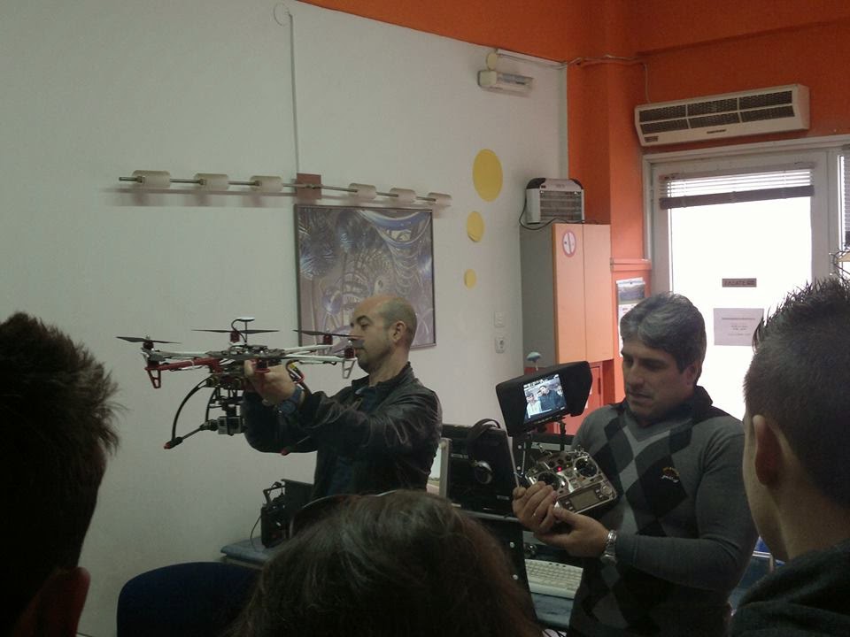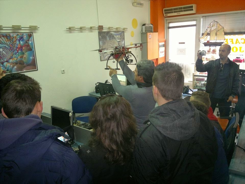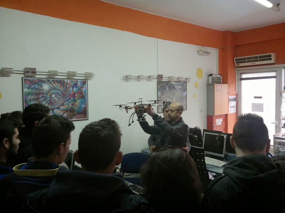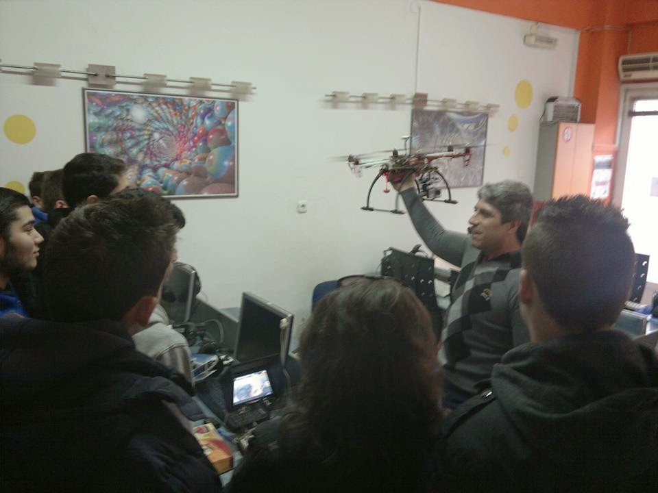 Επίσης ο κ. Λειλέτζογλου που ήταν και ο κύριος εισηγητής του Σεμιναρίου, ενημέρωσε τους μαθητές με αναλυτική περιγραφή για τον τρόπο που πετούν τα αεροπλάνα, Quadcopter, Αεροφωτογραφίσεις, FPV κ.τ.λ.