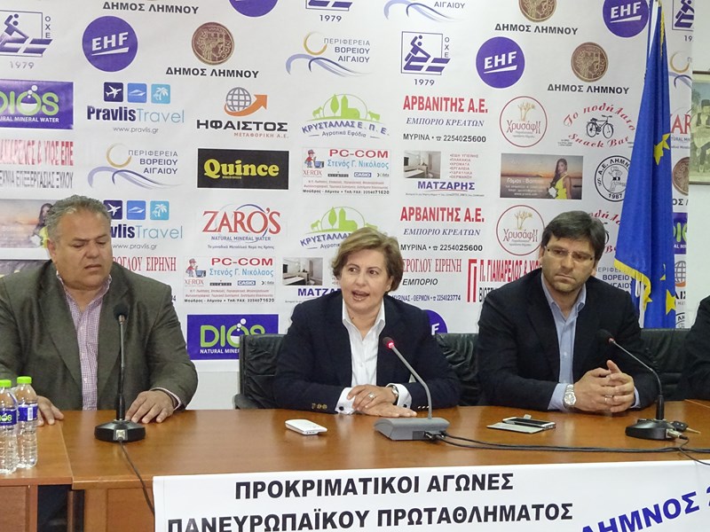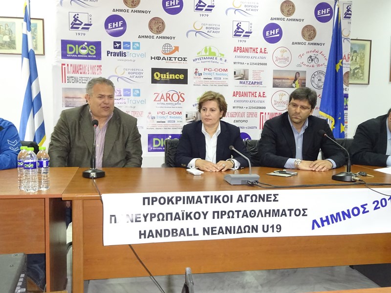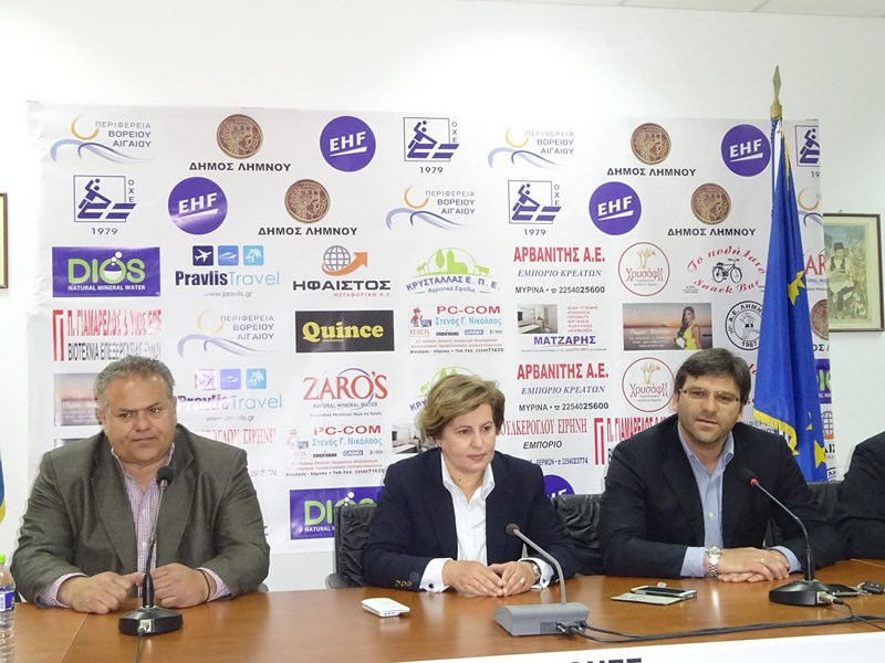 Για το ιδιαίτερης σημασίας αθλητικό γεγονός μίλησαν η Περιφερειάρχης Βορείου Αιγαίου, κα Χριστιάνα Καλογήρου, ο Δήμαρχος Λήμνου, κ. Δημήτρης Μαρινάκης, ο Ειδικός Γραμματέας Ομοσπονδίας Χειροσφαίρισης Ελλάδας, κ. Δημήτρης Σταυρακάκης, ο Αρχηγός Αποστολής Εθνικής Ομάδας κ. Αθανάσιος Μανδάς, ο Ομοσπονδιακός Προπονητής της Εθνικής Νεανίδων κ. Σωκράτης Βακάλης, η Αρχηγός του αντιπροσωπευτικού συγκροτήματος Μαρία Γεωρβανίδου, καθώς και η Πρωταθλήτρια και κυπελλούχος Ελλάδας, Τερματοφύλακας Μαγδαληνή Κυπεσίδη.