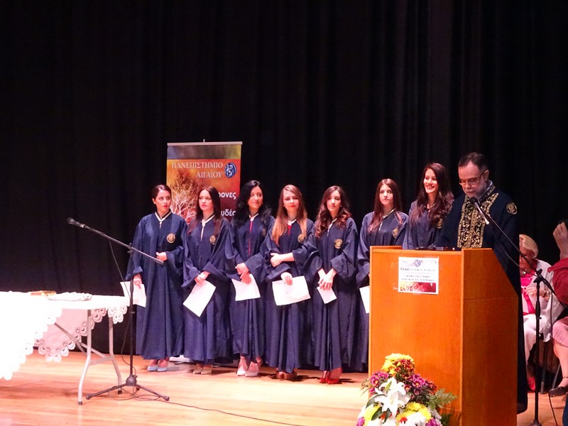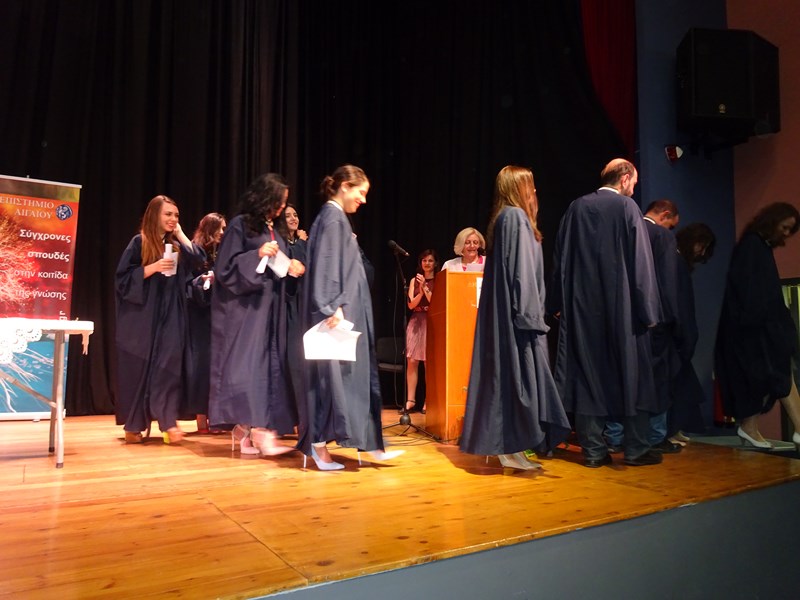 Στην Τελετή Καθομολόγησης παρευρέθηκαν γονείς φανερά συγκινημένοι, ενώ το παρών έδωσαν ο Πρύτανης του Πανεπιστημίου Αιγαίου και Καθηγητές του Τμήματος Επιστήμης Τροφίμων και Διατροφής.